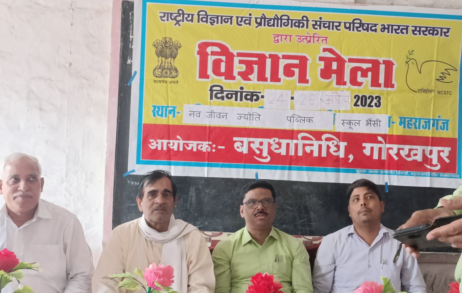 महाराजगंज l(राष्ट्र की परम्परा) राष्ट्रीय विज्ञान प्रौद्योगिकी संचार परिषद भारत सरकार और वसुधा निधि संस्थान गोरखपुर के संयुक्त तत्वाधान में परतावल विकासखंड के भैंसी स्थित नव जीवन ज्योति पब्लिक स्कूल भैंसी कॉलेज के परिसर में तीन दिवसीय विज्ञान मेले का शुभारंभ हुआ उद्घाटन समारोह को संबोधित करते हुए जिला विज्ञान क्लब के निवर्तमान समन्वयक कुमार पांडेय ने कहा कि विज्ञान के बल पर भारत एक बार फिर विश्व गुरु बनने के करीब है वह दिन दूर नहीं है जब भारत विश्व का नेतृत्व करेगा l उन्होंने कहा कि एक समय था जब हम ब्रिटेन के गुलाम थे और आज का यह समय है कि हम उसी देश के मिसाइल को प्रक्षेपित कर रहे हैं भारत के पुराने और अतीत गौरवशाली परम्परा को पुनः और अधिक अपग्रेड किए जाने के सार्थक प्रयास का ही फल हैl