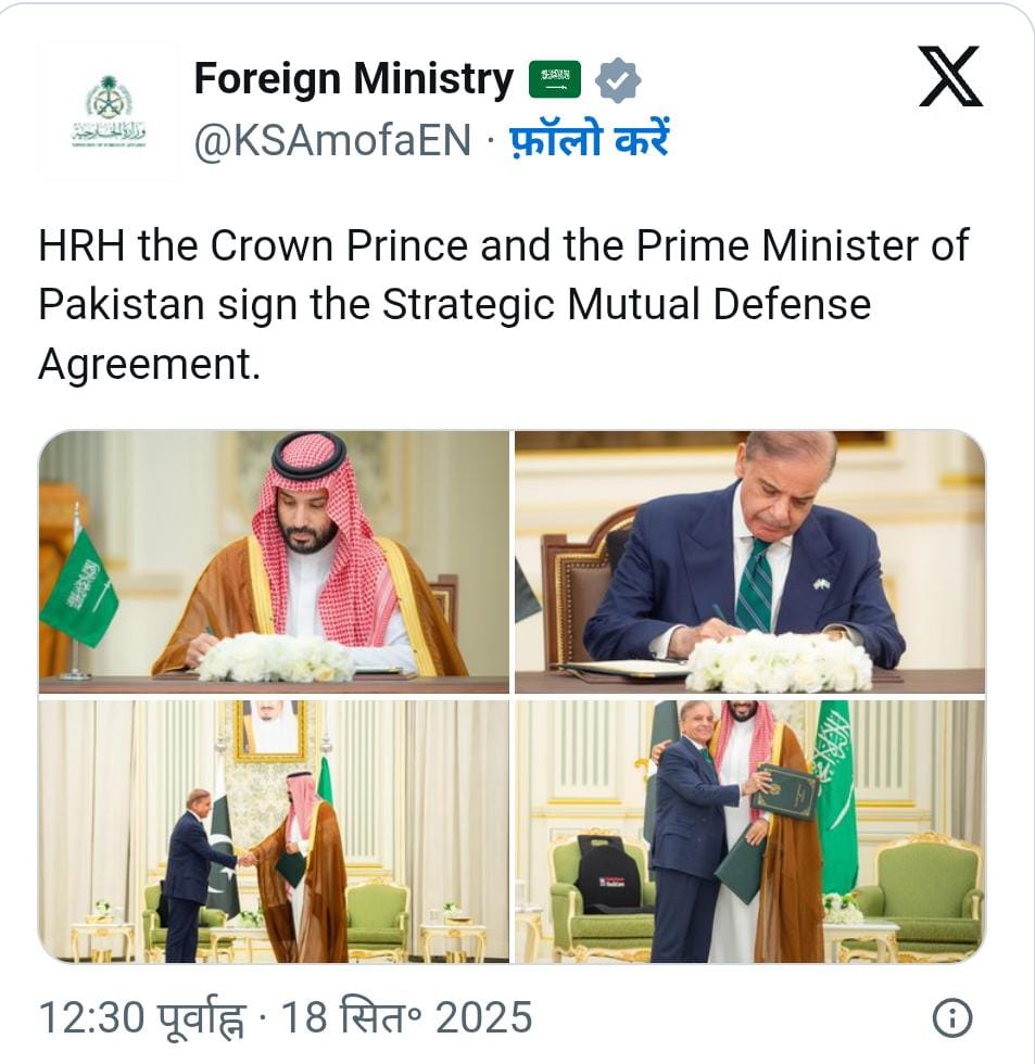 सऊदी अरब और पाकिस्तान का यह नया रक्षा समझौता खाड़ी और दक्षिण एशिया दोनों के समीकरणों को बदलने की क्षमता रखता है। जहां यह पाकिस्तान को कूटनीतिक सहारा और सऊदी को सैन्य सुरक्षा देता है, वहीं भारत जैसे पड़ोसी मुल्क के लिए यह नया चुनौतीपूर्ण परिदृश्य खड़ा करता है। भारत का संदेश स्पष्ट है – हालात पर नजर रखो, गहराई से समझो और राष्ट्रीय हितों के मुताबिक कदम उठाओ।
