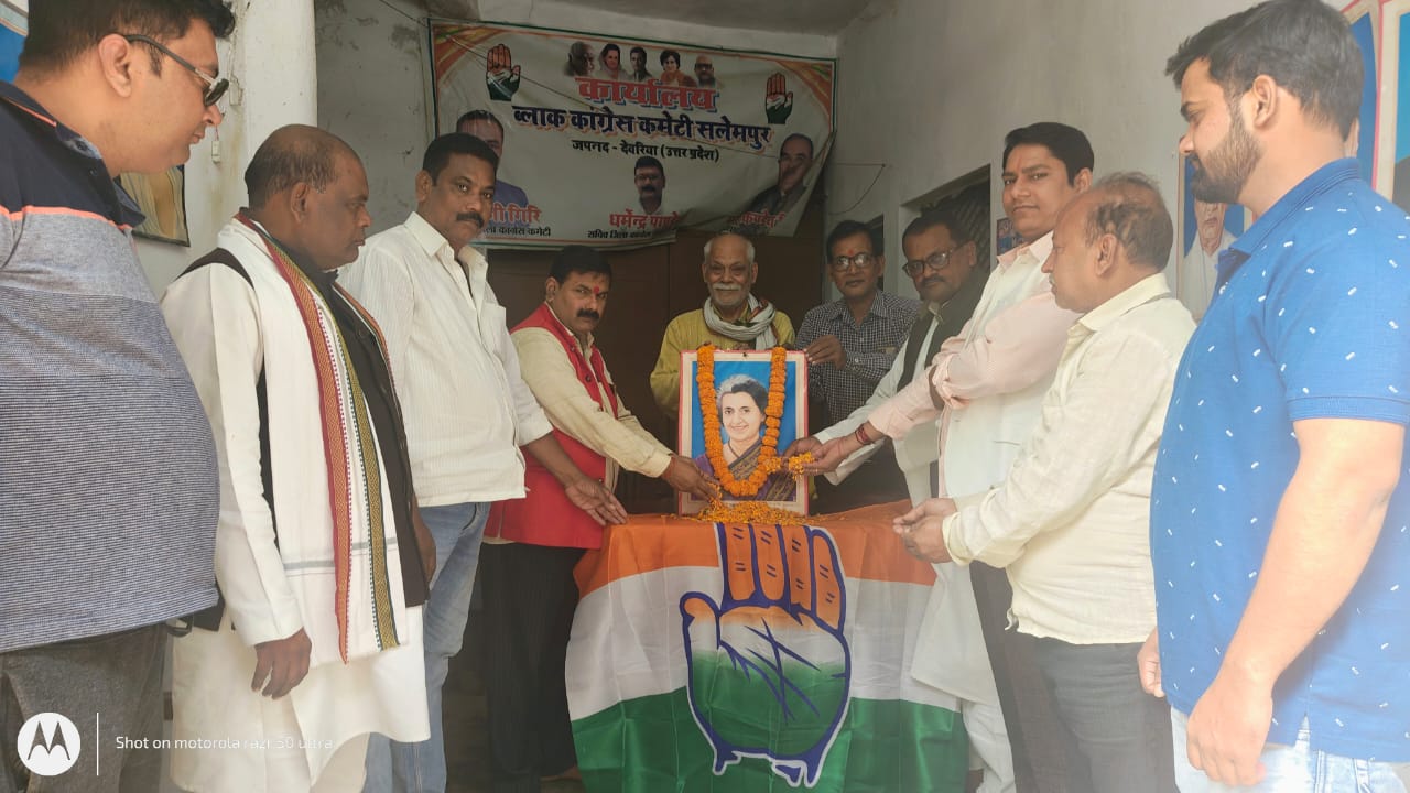 सलेमपुर/देवरिया(राष्ट्र की परम्परा) देश की पहली महिला प्रधानमंत्री भारत रत्न ,पूर्व प्रधानमंत्री इंदिरा गांधी की जयंती कांग्रेसियों ने उनके चित्र पर माल्यार्पण कर ब्लॉक कार्यालय पर गोष्ठी का आयोजन कर मनाया। इस दौरान सम्बोधित करते हुए जिला उपाध्यक्ष दीनदयाल प्रसाद ने कहा कि देश की एकता और अखंडता की रक्षा के लिए इंदिरा गांधी ने अपने प्राणो की आहुति दे दी।उन्होंने देश को मजबूत करने व एक सूत्र में पिरोने का कार्य किया।जिला महासचिव डॉ धर्मेन्द्र पांडेय ने कहा कि इंदिरा गांधी ने पाकिस्तान के दो टुकड़े कर उसके घमंड को चूर चूर कर दिया।बीस सूत्रीय कार्यक्रम लागू कर देश को हर मामले में आत्मनिर्भर बनाने का काम किया।अपने कुशल नेतृत्व में देश का मान सम्मान पूरे विश्व में बढ़ाया। अल्पसंख्यक कांग्रेस के प्रदेश सचिव बदरे आलम ने कहा कि आजादी की लड़ाई में महत्वपूर्ण भूमिका निभाने के बाद देश को हर मामले में मजबूत बनाने का काम इंदिरा गांधी ने किया।उनके नीतियों व सिद्धान्तों पर चलकर ही देश आगे बढ़ा है। युवा कांग्रेस के पूर्व प्रदेश महासचिव अभिनीत उपाध्याय ने कहा कि इंदिरा गांधी के सिद्धांतों के बल पर ही देश आज विकसित देशों की तरह मजबूत हो गया है। कार्यक्रम को लालसाहब यादव, सत्यम पांडेय,रामविलास तिवारी,चुन्नू श्रीवास्तव, प्रमोद श्रीवास्तव,सैयद फिरोज अहमद,मनोज सिंह अमेठिया,रणजीत शुक्ला, धर्मवीर भारती,रोहित यादव, अशोक कुमार,डॉ नरेन्द्र यादव, आदि ने सम्बोधित किया।