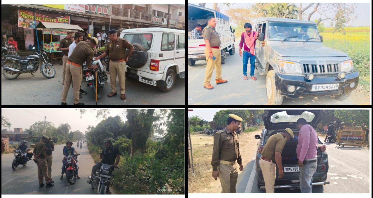 सभी थाना प्रभारियों/थानाध्यक्ष द्वारा थाना क्षेत्र स्थित बार्डर पर नाकाबन्दी अभियान के तहत की गयी चेकिंग ।