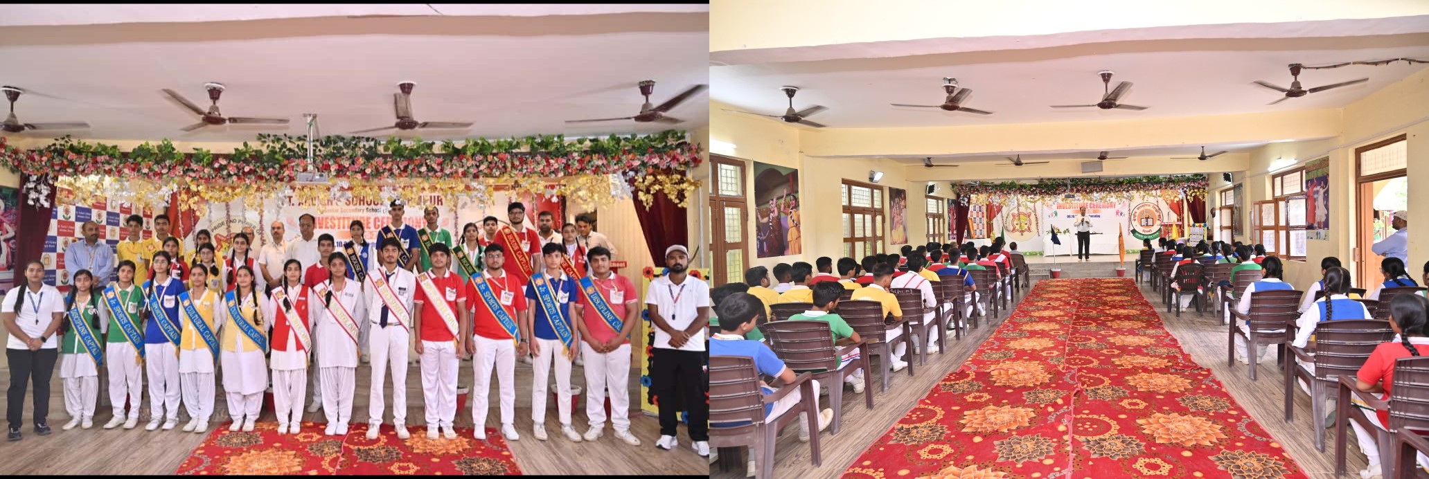 हेड बॉय अभिषेक दूबे, हेड गर्ल ज़ारा हयात, स्कूल कैप्टन कान्हा बर्नवाल एवं ऋचा सागर, स्पोर्ट्स कैप्टन नवाज खान एवं अदिति यादव, जूनियर स्पोर्ट्स कैप्टन आशुतोष तिवारी एवं निकू यादव, सीनियर स्पोर्ट्स वाइस कैप्टन बेलाल खान एवं अर्पिता तिवारी, कल्चरल कैप्टन तपस्या चतुर्वेदी एवं प्रांजलि मिश्रा, डिसिप्लिन कैप्टन अनुराग तिवारी एवं अदिति वर्मा, रेड हाउस कैप्टन प्रतीक मिश्रा एवं दिव्या तिवारी, रेड हाउस वाइस कैप्टन श्रृष्टि बर्नवाल एवं कृतिका गुप्ता, यलो हाउस कैप्टन प्रदीप यादव एवं आलिया परवीन, यलो हाउस वाइस कैप्टन दिव्यांशी त्रिपाठी एवं आराध्या सिंह, ग्रीन हाउस कैप्टन अंकित सिंह एवं अर्चिता मिश्रा, ग्रीन हाउस वाइस कैप्टन स्वरित शुक्ल एवं श्रेया बर्नवाल, ब्लू हाउस कैप्टन रौनक मिश्रा एवं मुस्कान यादव, तथा ब्लू हाउस वाइस कैप्टन तन्मय चतुर्वेदी एवं अदिति सिंह को बैज पहनाकर सम्मानित किया गया।