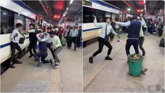 वीडियो में देखा जा सकता है कि मामूली बहस बड़ी लड़ाई में बदल जाती है। एक कर्मचारी दूसरे को जमीन पर गिराकर मार रहा है, तो कुछ कर्मचारी बेल्ट और पास रखे डस्टबिन से हमला कर रहे हैं। घटना के दौरान पुलिसकर्मी और कुली बीच में आते हैं, लेकिन उनकी अनुपस्थिति में लड़ाई फिर से शुरू हो जाती है।