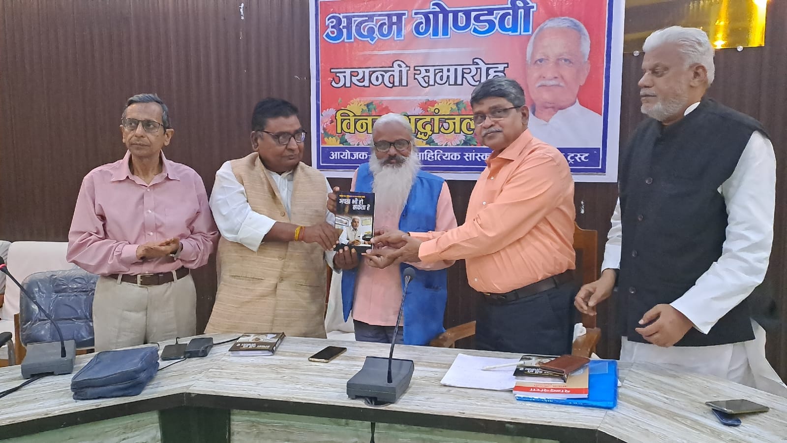 कर्नलगंज / गोण्डा (राष्ट्र की परम्परा)। तुम्हारी फाईलों में गाँव का मौसम गुलाबी है, मगर ये आंकड़े झूंठे हैं और दावा किताबी है । मेरी सिद्दत ने केवल केवल सर झुकाया दो जगह या कोई मजलूम हो या साहिबे किरदार हो ।। इस पंक्ति को आजीवन आत्मसात करने वाले, गरीबों, मजलूमों व वंचितों की आवाज रहे जनकवि स्व० रामनाथ सिंह अदम गोंडवी की जयन्ती शनिवार को अनुभूति सामाजिक, सांस्कृतिक व साहित्यिक ट्रस्ट के तत्वाधान में कर्नलगंज में मनाई गई। नगर पालिका परिषद सभागार में आयोजित कार्यक्रम की अध्यक्षता स्वतंत्रता संग्राम सेनानी पंडित राम अचल आचार्य तथा संचालन याकूब सिद्दीकी “अज्म” ने किया। अदम गोंडवी को श्रद्धांजलि देने सेवानिवृत आईएएस बी०के० सिंह तथा गोंडा के पूर्व डीएम राम बहादुर लखनऊ से आए। कार्यक्रम के मुख्य अतिथि के रूप में बोलते हुए पूर्व डीएम गोंडा राम बहादुर ने जिले की खासियत का बखान किया। उन्होंने जनकवि अदम सोच की तारीफ करते हुए उनके पद चिन्हों पर चलने की अपील की तथा गोण्डा में पैदा हुए रामचरित मानस के रचयिता गोस्वामी तुलसीदास, पूरी दुनिया को योग की शिक्षा देने वाले महर्षि पतंजलि, कृषि वैज्ञानिक घाघ, आजादी आंदोलन के अग्रदूत महाराजा देवी बक्श सिंह तथा गोंडा में शिक्षा लेकर देश के उत्थान में शामिल पूर्व राष्ट्रपति फखरुद्दीन जैसे महापुरुषों के जीवन चरित्र को स्मरण कर उन्हें श्रद्धांजलि अर्पित की। वहीं वरिष्ठ पत्रकार धीरेंद्र श्रीवास्तव ने अदम जी को श्रद्धांजलि अर्पित करते हुए कहा कि उनकी एक-एक पंक्ति में बहुत बड़ा संदेश छुपा है उनका एक एक शब्द अपने आप में आंदोलन है। इस मौके पर वरिष्ठ पत्रकार अनिल त्रिपाठी, कार्यक्रम संयोजक अवधेश सिंह, डा ए०के सिंह, कौतुक गुप्ता प्रमोद त्रिपाठी,त्रिलोकी नाथ तिवारी,अवधेश गोस्वामी,संतराम सिंह,गजराज सिंह,अमित सिंह,आशीष सिंह,पुष्पा वेदांती, पुनीता बाजपेयी,इफ्तिखार अहमद,विजय गोस्वामी, प्राग सिंह, सचिन सिंह, वीरेंद्र विक्रम तिवारी “बेतुक”, के०के० सिंह दीप, जयदीप सिंह सरस सहित अन्य तमाम लोगों ने अदम जी को नमन करते हुए उन्हें याद किया। इस कार्यक्रम में कई शायरों व कवियों ने अपनी रचनाओं के माध्यम से अदम जी तथा अशफाक उल्ला खां को श्रद्धांजलि अर्पित की।