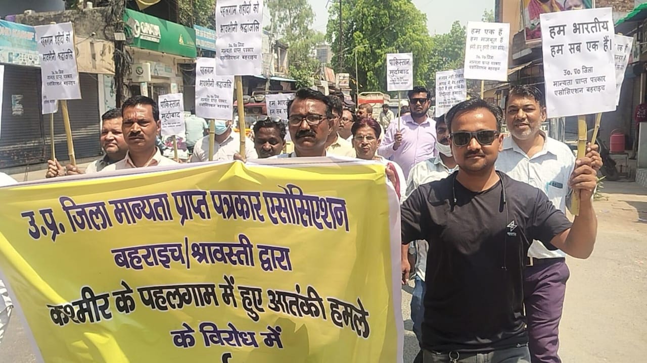 बहराइच (राष्ट्र की परम्परा)। उत्तर प्रदेश जिला मान्यता प्राप्त पत्रकार एसोसिएशन ने कश्मीर के पहलगाम में हुए आतंकी हमले के विरोध में मौन जुलूस निकाला और ज्ञापन सौंपा।