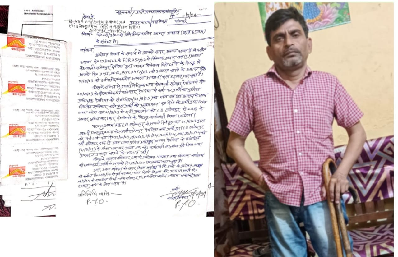 सलेमपुर/देवरिया(राष्ट्र की परम्परा)।करीब ड़ेढ़ साल पहले 27 अक्टूबर 2022 को अपने ऊपर हुए हमले के मामले में अब तक मुकदमा दर्ज न होने से परेशान दोनों पैर से दिव्यांग नगर पंचायत सलेमपुर के स्टेशन रोड निवासी राजेश रौनियार पुत्र फूलचंद गुप्ता ने पुनः मुख्यमंत्री व पुलिस के उच्चाधिकारियों से 28 मार्च के पहले न्याय न मिलने पर नगर के गांधी चौक पर आमरण अनशन शुरू करने की चेतावनी रजिस्टर्ड डाक से पत्र भेजकर दे दिया है। राजेश रौनियार ने बताया कि 21 अगस्त 2023 को गांधी चौक पर आमरण अनशन पर बैठा था तो एक दिन बाद 22 अगस्त को सीओ सलेमपुर ने दो माह के अंदर मामले की जांच कराकर न्याय दिलाने व मुकदमा दर्ज करने का आश्वासन दिया था लेकिन आज तक न्याय नहीं मिल सका है। उल्टे घटना के समय मेरे ऊपर ही मारपीट का मुकदमा दर्ज कर दिया गया है।जबकि बिना वैसाखी के हम चलने में भी असमर्थ हैं। कई बार सीओ साहब के पास जाने के बाद भी कोई कार्रवाई नही हो रही है।अब हमारा यह आमरण अनशन 28 मार्च से जांच व न्याय मिलने तक जारी रहेगा।