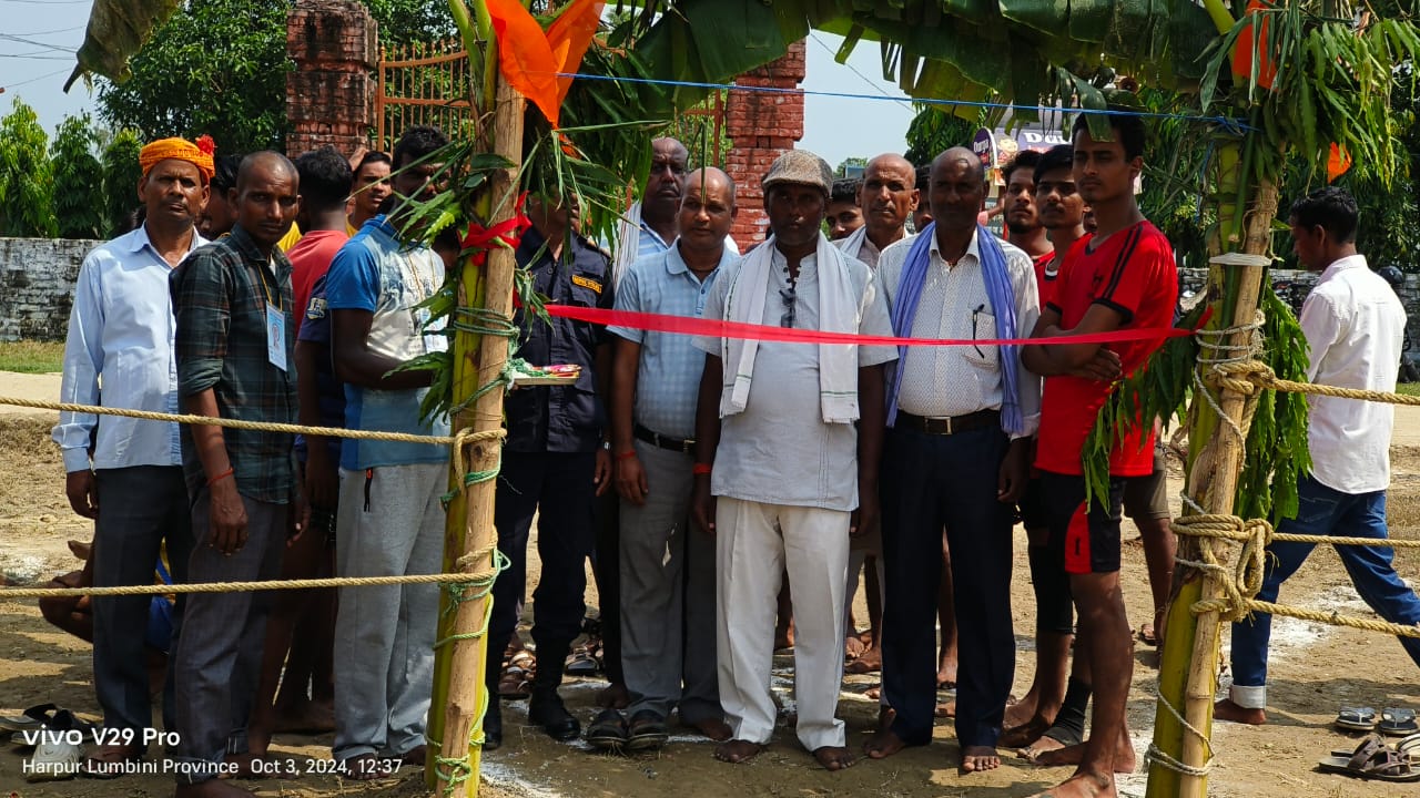 महराजगंज (राष्ट्र की परम्परा)। पड़ोसी राष्ट्र नेपाल के गोपालपुर स्थित मिनी गोरक्षधाम मंदिर प्रांगण में गोरक्ष युवा क्लब द्वारा कबड्डी प्रतियोगिता का आयोजन किया गया है। प्रतियोगिता में भारत व नेपाल की 45 टीमें प्रतिभाग कर रही है। प्रतियोगिता का समापन 09 अक्तूबर को होगा। फाइनल में विजेता टीम को 32000 हजार, उप विजेता को 16000 हजार व तृतीय स्थान पर रहने वाली टीम को 10000 रुपए नेपाली का नगद इनाम दिया जाएगा। मैच शुभारंभ अध्यक्ष जगदीश प्रसाद गुप्ता पाल्हीनंदन 2 द्वारा फीता काटकर किया गया। पहला कबड्डी मैच पाल्हीनंदन बनाम राजाबारी के बीच खेला गया जिसमें पाल्हीनंदन की टीम विजयी रही। दूसरा मैच ब्लैक वैरियर भरवलिया बनाम पिपरा के हुआ जिसमे ब्लैक वैरियर ने जीत हासिल की। तीसरा मैच हरपुर योद्धा बनाम किंग्स आफ एमआरजे के बीच हुआ। जिसमे हरपुर योद्धा की टीम विजेता रही। पहले दिन का आखिरी मैच सानो महुअवा बनाम गोपालपुर के बीच खेला गया। दर्शक अपनी अपनी टीम को जीत दिलाने के लिए हूटिंग करते दिखाई दिए। इस दौरान गोरक्ष युवा क्लब के अध्यक्ष ऋषिमणि पटेल, उपाध्यक्ष, महेंद्र हरिजन, पप्पू यादव,अजय कुशवाहा, मोहन कोहार, सदस्य राम किशोर खटीक, त्रिजुगी यादव, प्रभुनाथ पटेल, राजेश विश्वकर्मा सहित तमाम लोग मौजूद रहें।