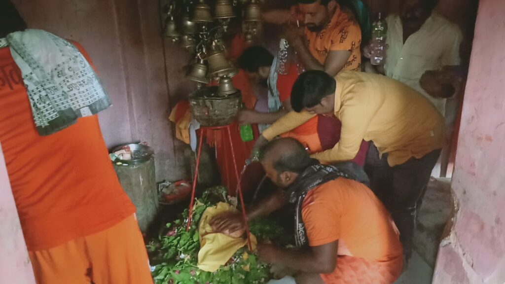 और कांवरियों द्वारा शिव मंदिर मंगलीनाथ धाम पहुंचकर शिव पार्वती पूजन अर्चन वंदन करके राप्ती नदी से भरकर लाए पवित्र जल का जलाभिषेक किया। वहीं कांवरिया भक्त गणों ने बोलबम के नारे लगाते हुए मंदिर परिसर को गुंजायमान कर दिया।तत्पश्चात मंदिर परिसर में बिशाल भंडारे का प्रसाद ग्रहण किया। इसके बाद समस्त कांवरिया भक्त गण अपने अपने घर को रवाना हुए।