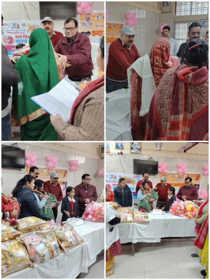 कुशीनगर (राष्ट्र की परम्परा)। समाज में बेटियों के प्रति सकारात्मक सोच विकसित करने और उनके जन्म को उत्सव के रूप में स्थापित करने की दिशा में कुशीनगर जनपद में सराहनीय पहल की गई। बेटी बचाओ बेटी पढ़ाओ योजना के अंतर्गत जिलाधिकारी के निर्देशानुसार शुक्रवार को संयुक्त जिला चिकित्सालय, रविन्द्रनगर धूस के सभागार में कन्या जन्मोत्सव कार्यक्रम आयोजित हुआ, जहां तीन दिवस पूर्व जन्मी नवजात कन्याओं के जन्म पर केक काटकर उत्सव मनाया गया और माताओं को सम्मानित किया गया। कार्यक्रम के दौरान कुल 21 नवजात कन्याओं की माताओं को आमंत्रित कर उन्हें मिष्ठान, अंगवस्त्र, बेबी किट, हल्दी पैकेट, गुड़िया और चॉकलेट सहित उपयोगी व प्रतीकात्मक उपहार प्रदान किए गए। बेटियों को गोद में लिए माताओं के चेहरों पर खुशी और गर्व साफ झलक रहा था। स्वास्थ्य विभाग और महिला कल्याण विभाग के संयुक्त प्रयास से आयोजित इस कार्यक्रम को सामाजिक सोच में बदलाव की दिशा में अहम कदम बताया गया। कार्यक्रम में प्रमुख चिकित्सा अधीक्षक डॉ. दिलीप, जिला प्रोबेशन अधिकारी ध्रुवचन्द्र त्रिपाठी, जिला कार्यक्रम अधिकारी ए.के. दूबे एवं श्रम प्रवर्तन अधिकारी सुश्री अलंकृता उपस्थित रहीं। जिला प्रोबेशन अधिकारी ध्रुवचन्द्र त्रिपाठी ने कहा कि बेटियां राष्ट्र की प्रगति की आधारशिला हैं और आज हर क्षेत्र में अपनी प्रतिभा का परिचय दे रही हैं। इस अवसर पर जिला मिशन समन्वयक नलिन सिंह ने मुख्यमंत्री कन्या सुमंगला योजना की जानकारी देते हुए बताया कि योजना के तहत बालिकाओं को जन्म से लेकर शिक्षा तक आर्थिक सहायता प्रदान की जाती है।