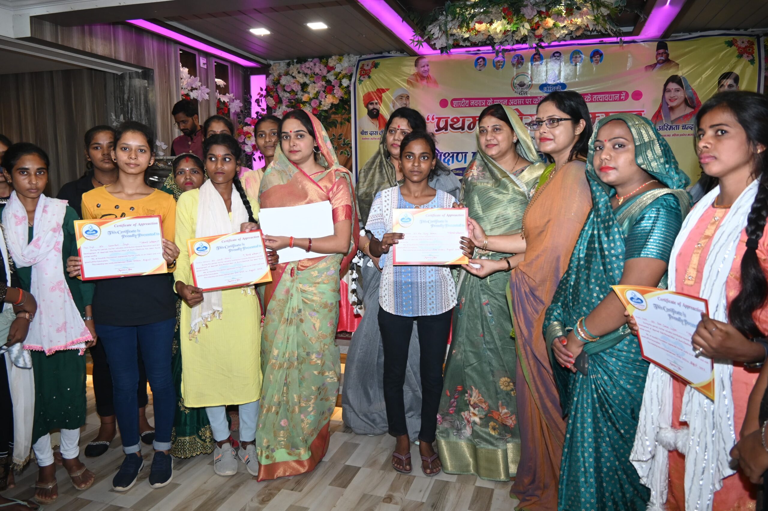 बड़हलगंज ( राष्ट्र की परंपरा ) विगत वर्षों से सक्रिय संगठन “कौशिकी फाउंडेशन” द्वारा स्थानीय सत्कार होटल सभागार में उनके द्वारा प्रशिक्षित छात्रों हेतु प्रशिक्षण प्राप्ति प्रमाण पत्र वितरण कार्यक्रम आयोजित किया गया। इसके साथ ही शहर में विभिन्न रचनात्मक और सकारात्मक स्वरूप में कार्य हेतु पांच युवा (पुरुष) व पांच युवा शक्ति (महिला) सम्मान भी दिए गये। जानकारी देते हुए फाउंडेशन की संस्थापक अध्यक्ष श्रीमती ममता ओझा से बताया कि कौशिकी फाउंडेशन मूलतः उस वर्ग की सेवा में कार्यरत है जिन्हे मूलभूत सुविधाएं मिल ही नही पातीं। इस दिशा में वे अपने साथियों के साथ लगातार विगत वर्षों में सक्रिय रहते हुए निचली बस्तियों के बालक बालिकाओं हेतु शिक्षा, शिक्षण सामग्री और शिक्षण में संलग्न हैं। इसी वर्ग की महिलाएं स्वरोजगार प्राप्त कर सकें इसलिए उन्हें सिलाई प्रशिक्षण शिविरों के माध्यम से दिया जाता है। इस अवसर पर इन्ही प्रशिक्षण प्राप्त तीस महिलाओं और बालिकाओं को प्रमाण पत्र दिए गए।