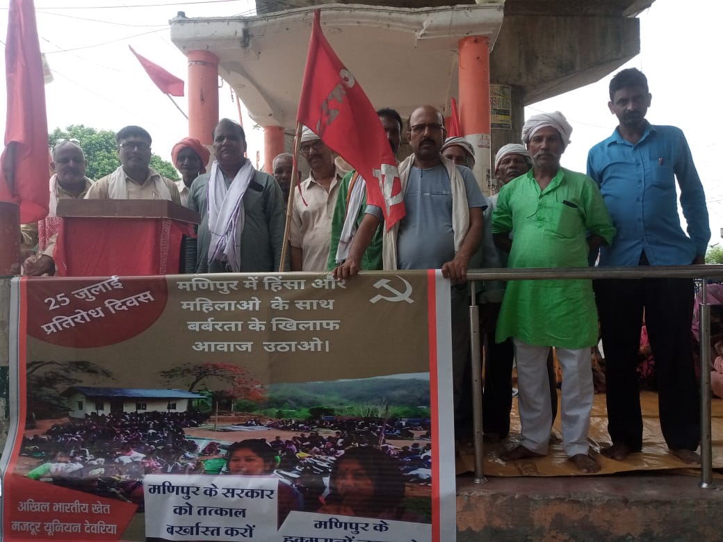 सलेमपुर/देवरिया(राष्ट्र की परम्परा) राष्ट्रब्यापि आह्वान पर सलेमपुर के गांधी चौक पर उत्तर प्रदेश खेत मजदूर यूनियन के कार्यकर्ताओं द्वारा राष्ट्रपती मुर्मू को सलेमपुर उप जिला अधिकारी के द्वारा मणिपुर के घटना के विरोध में एक दिवसीय धरना और जुलूस निकालकर ज्ञापन दिया गया । इस ज्ञापन के द्वारा मांग की गई कि मणिपुर सरकार को तत्काल बर्खास्त किया जाए । राष्ट्रपति शासन लागू किया जाए । मृतक परिवारों को एक एक करोड़ का मुआवजा और मृतक परिवारों में 1 लोग को नौकरी की व्यवस्था की जाए। प्रभावित जिलों के डीएम और एसपी को बर्खास्त कर मणिपुर के अंदर जनतंत्र को बाहर किया जाए । पीड़ित परिवार को पुनर्वासन की तत्काल व्यवस्था किया जाए धरने को संबोधित करते हुए कॉमरेड सतीश कुमार ने कहा कि महिदपुर के अंदर चंद्र और भाजपा दोनों की डबल इंजन सरकार है यह सरकार नफरत के आधार पर गुजरात के विकास मॉडल को मणिपुर के अंदर भी लागू करना चाहती है जो असंवैधानिक और लोकतांत्रिक है मणिपुर के अंदर जो वीडियो आया वह बर्बर और आदम युग को दर्शाता है । हम लोग मणिपुर की जनता के साथ हैं हम लोग चाहते हैं कि जल्द से जल्द मणिपुर में एकता और सद्भाव कायम हो इस सभा को संबोधित करते हुए कॉमरेड प्रेमचंद यादव ने कहा कि भाजपा नफरत के आधार पर सत्ता में बने रहना चाहती है उसी का नतीजा आपने पिछले गुजरात को देखा और आप मणिपुर को देख रहे हैं ।सभा को हरे कृष्ण कुशवाहा बलविंदर मौर्य सहित सैकड़ों लोग शामिल रहे