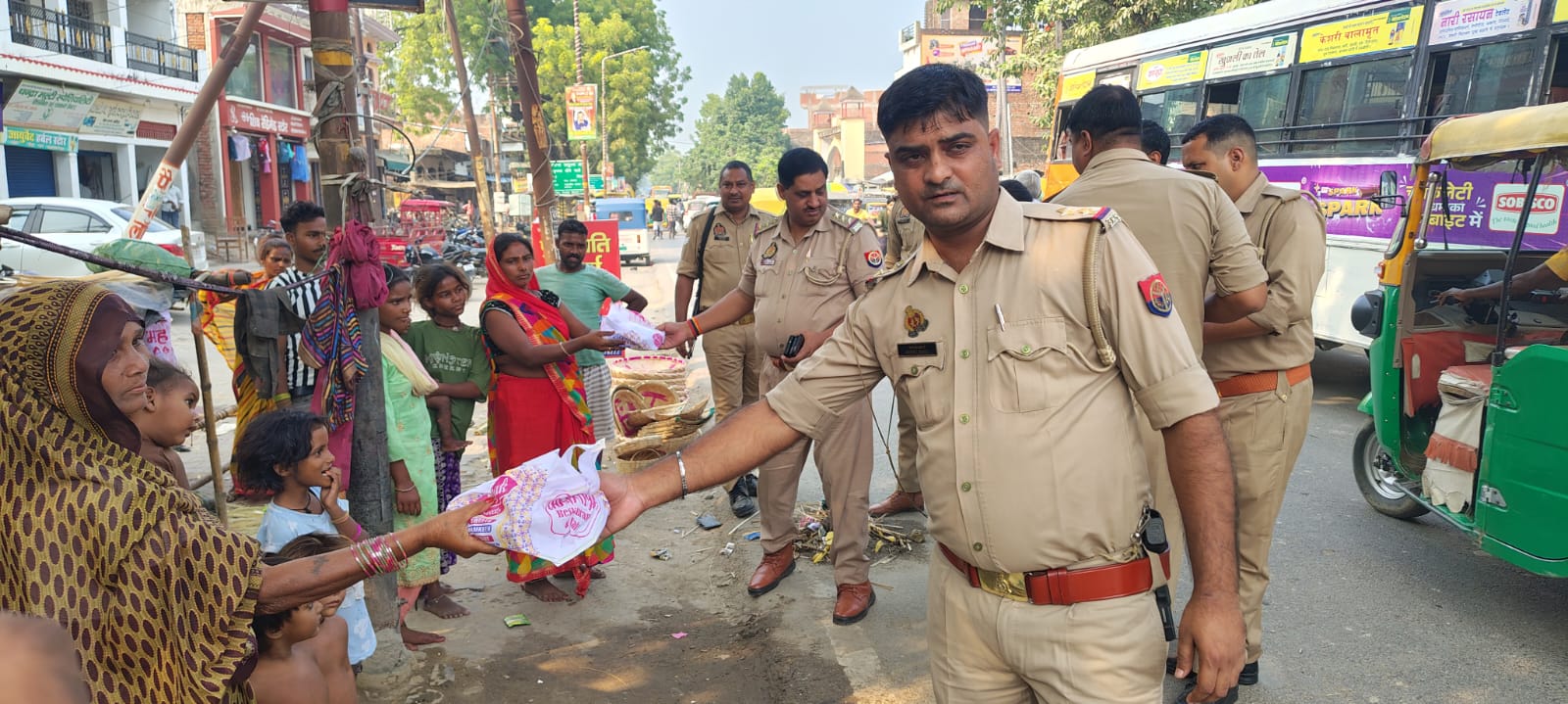 थानाध्यक्ष द्वारा मिठाइयां व पटाखे पाकर खिले गरीबों के चेहरे