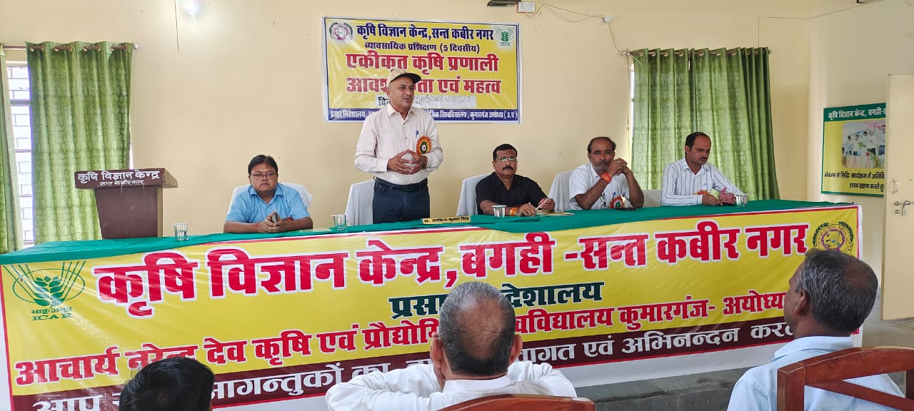 संत कबीर नगर (राष्ट्र की परम्परा)। कृषि विज्ञान केंद्र, बगही के कृषि प्रसार अनुभाग द्वारा आयोजित पांच दिवसीय व्यावसायिक प्रशिक्षण का शुभारंभ सफलतापूर्वक केंद्र के वरिष्ठ वैज्ञानिक एवं अध्यक्ष डॉ अरविंद कुमार सिंह द्वारा किया गया।