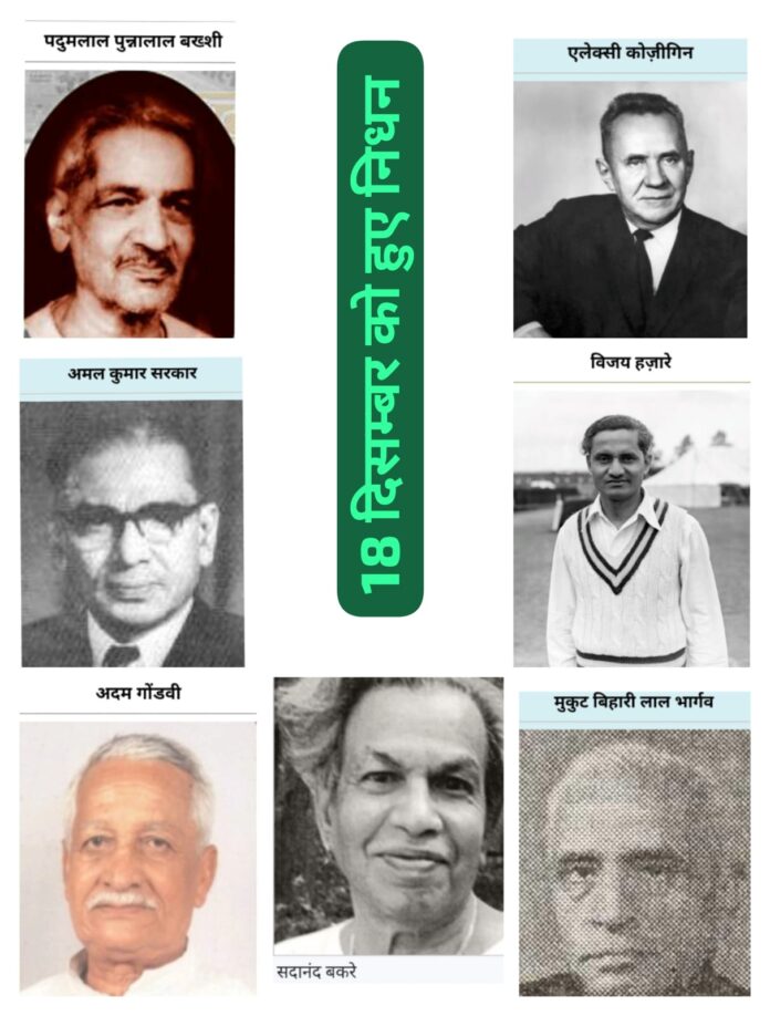इतिहास केवल तिथियों का संग्रह नहीं, बल्कि उन महान व्यक्तित्वों की स्मृतियों का जीवंत दस्तावेज़ है, जिन्होंने अपने कर्म, विचार और योगदान से समाज को दिशा दी। 18 दिसंबर की तारीख भारतीय और वैश्विक इतिहास में इसलिए भी विशेष है क्योंकि इस दिन राजनीति, साहित्य, कला, न्याय और खेल जगत की कई महान विभूतियों ने संसार को अलविदा कहा। उनका देहांत भले ही हुआ हो, पर उनकी विरासत आज भी जीवित है। आइए जानते हैं 18 दिसंबर को हुए महत्वपूर्ण निधन और उन व्यक्तित्वों के जीवन, जन्म-स्थल तथा राष्ट्रहित में योगदान के बारे में विस्तार से।