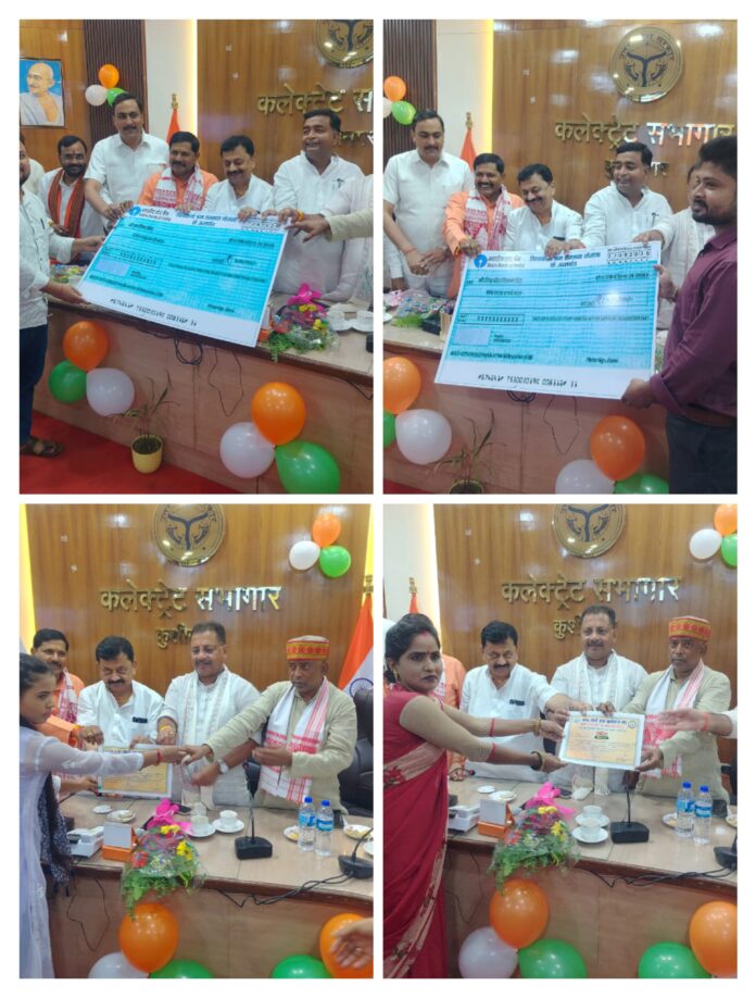 विश्वकर्मा जयंती के अवसर पर ‘विश्वकर्मा एक्सपो-2025’ का शुभारंभ हुआ। इंदिरा भवन लखनऊ में आयोजित कार्यक्रम का लाइव प्रसारण जनपद के कलेक्ट्रेट सभागार में देखा गया। इस अवसर पर MSME क्षेत्र हेतु ₹1,32,000 करोड़ का मेगा ऋण एवं मिशन रोजगार अंतर्गत विश्वकर्मा श्रम सम्मान योजना के लाभार्थियों को टूलकिट व नियुक्ति पत्र वितरण का कार्यक्रम संपन्न हुआ।लाइव प्रसारण उपरांत कलेक्ट्रेट सभागार में आयोजित कार्यक्रम में 06 लाभार्थियों को टूलकिट तथा 05 लाभार्थियों को 5-5 लाख रुपये के प्रतीकात्मक चेक का वितरण किया गया। इसके अतिरिक्त 30 लाभार्थियों को कल लखनऊ में ऋण/प्रमाण पत्र वितरित किया जाएगा।इस अवसर पर सांसद कुशीनगर विजय कुमार दुबे ने कहा कि स्वतंत्रता के बाद से विश्वकर्मा समाज एवं छोटे किसानों को उपेक्षित रखा गया, लेकिन प्रधानमंत्री जी ने उनके हुनर को आगे बढ़ाने का संकल्प लिया है। उन्होंने कहा कि जब तक समाज का उपेक्षित वर्ग आगे नहीं बढ़ेगा, तब तक देश का विकास संभव नहीं है। सांसद ने प्रधानमंत्री नरेंद्र मोदी के जन्मदिन पर उन्हें दीर्घायु और देश सेवा हेतु निरंतर ऊर्जा की शुभकामनाएं दीं।कार्यक्रम में जिलाधिकारी महेंद्र सिंह तंवर ने सभी जनप्रतिनिधियों का आभार व्यक्त करते हुए लाभार्थियों को शुभकामनाएं दीं। संचालन मनंजय मिश्र ने किया।इस मौके पर विधायक पडरौना मनीष जायसवाल, विधायक रामकोला विनय प्रकाश गौंड, विधायक खड्डा विवेकानंद पांडेय, विधायक हाटा मोहन वर्मा, पिछड़ा वर्ग आयोग सदस्य फूलबदन कुशवाहा, कसया चेयरमैन प्रतिनिधि सहित जनपद स्तरीय अधिकारीगण एवं बड़ी संख्या में लाभार्थी उपस्थित रहे।