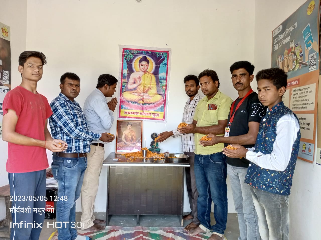 प्रगतिशील विश्व मौर्य परिषद अखंड भारत के तत्वाधान में मोगलहा, निज़ामपुर व जिला कार्यालय गजपतिपुर में विश्व को शान्ति एवं अहिंसा,भाईचारे, प्रेम व ज्ञान का सन्देश देने वाले, करुणा व दया के सागर तथागत भगवान गौतम बुद्ध के अवतरण एवं महापरिनिर्वाण दिवस जिलाध्यक्ष आशीष कुमार मौर्य की अध्यक्षता में गया मनाया। इस अवसर पर प्रदेश महासचिव संतोष कुमार मौर्य ने कहा कि वैशाख महीने की पूर्णिमा को गौतम बुद्ध का जन्म कपिलवस्तु के निकट लुम्बिनी में हुआ था। उनको ‘एशिया के ज्योति पुंज’ के तौर पर भी जाना जाता है। भगवान बुद्ध की शिक्षाएँ, विचार और बौध धर्म से जुड़ी प्रमुख बातों पर अध्ययन करते हैं जिनसे जीवन में काफी बदलाव लाया जा सकता है।बुद्ध पूर्णिमा जिसे बुद्ध जयन्ती के रूप में भी जाना जाता है। प्रदेश प्रवक्ता अजय कुमार मौर्य ने कहा कि महात्मा बुद्ध अपने जीवन के अंतिम पड़ाव में हिरण्यवती नदी के तट पर कुशिनारा पहुँचे। जहाँ पर 80 वर्ष की अवस्था में इनकी मृत्यु हो गई। इसे बुद्ध परम्परा में महापरिनिर्वाण के नाम से जाना जाता है। मृत्यु से पहले उन्होंने अपना अंतिम उपदेश कुशिनारा के परिव्राजक सुभच्छ को दिया महापरिनिर्वाण के बाद बुद्ध के अवशेषों को आठ भागों में विभाजित किया गया। जिलाध्यक्ष आशीष कुमार मौर्य ने कि इसमें कोई संदेह नहीं है कि महात्मा बुद्ध की शिक्षाओं और कथनों को अपने जीवन में उतार कर सुख-समृद्धि और सफलता प्राप्त कर सकते हैं। और जीवन की कई समस्याओं से बच सकते हैं। इस मौके पर मनीष कुमार मौर्य, जिला मंत्री प्रेम कुमार मौर्य, विशेश्वरगंज ब्लॉक अध्यक्ष कृष्ण कुमार मौर्य, दीपक कुमार मौर्य संत कुमार मौर्य,राम निहल मौर्य, शिवम् मौर्य, प्रशांत मौर्य, शशांक मौर्य, राजेंद्र प्रसाद राजपूत, शैलैश कुमार मौर्य,जैकेश कुमार मौर्य, एडवोकेट योगेंद्र कुमार मौर्य,अशोक कुमार मौर्य,रामू आर्या,चांद बाबू खान,विजय कुमार दिनकर, बंसीलाल लाल मौर्य आदि लोग मौजूद रहे।