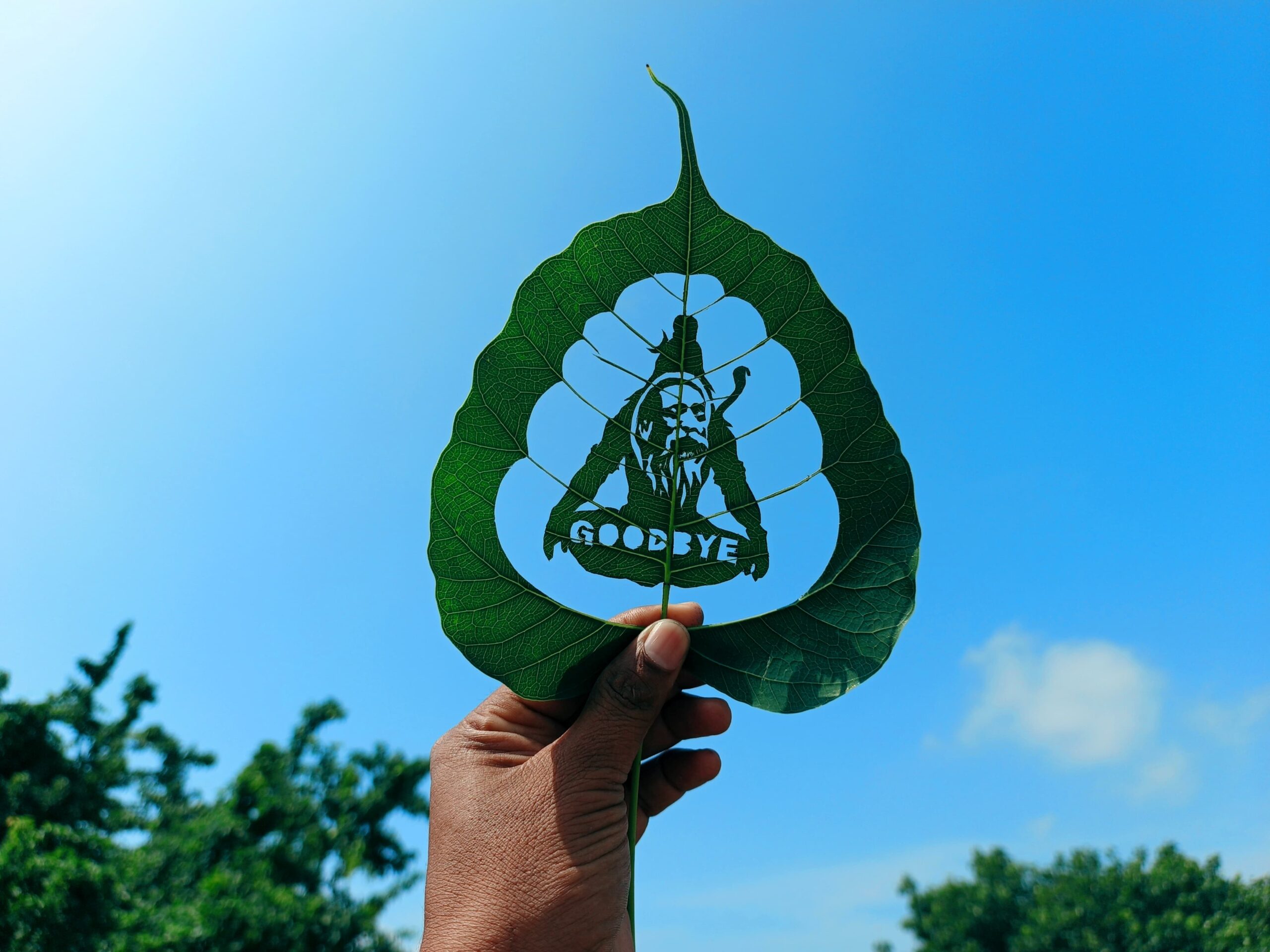 अंतरराष्ट्रीय सैंड आर्टिस्ट मधुरेंद्र ने पीपल पत्तों में उकेरी महादेव की तस्वीर सोरेन को लिखा गुड बाय गुरूजी
