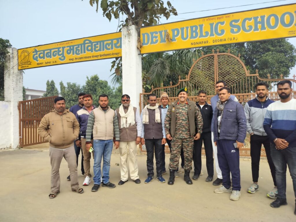 देव बन्धु महाविद्यालय में आयोजित सम्मान समारोह में गांव के अपने भाई चाचा दादा तथा भतीजों से मिलकर गले लगाये और भावुक होकर गांव से विदा लिये गांव के सभी लोगों ने जोश के साथ अपने धरती के लाल को विदा किया और फिर गांव आने का निमंत्रण दिया इस अवसर पर प्रबंधक देव बन्धु महाविद्यालय पं. गंगेश्वर नाथ तिवारी, अजय कुमार तिवारी, अमीर लाल तिवारी, राज तिवारी, सिंधु तिवारी, राहुल राजा तिवारी, विनय तिवारी, जितेन्द्र तिवारी, ईश्वर दयाल तिवारी, ठीकेदार साहब पुगन बन्ना, कन्हैया, राहुल सभी ने मेजर भैया को सम्मानित किया और गांव में साथ साथ घुमकर पुराने यादों को तरो ताजा किया ।