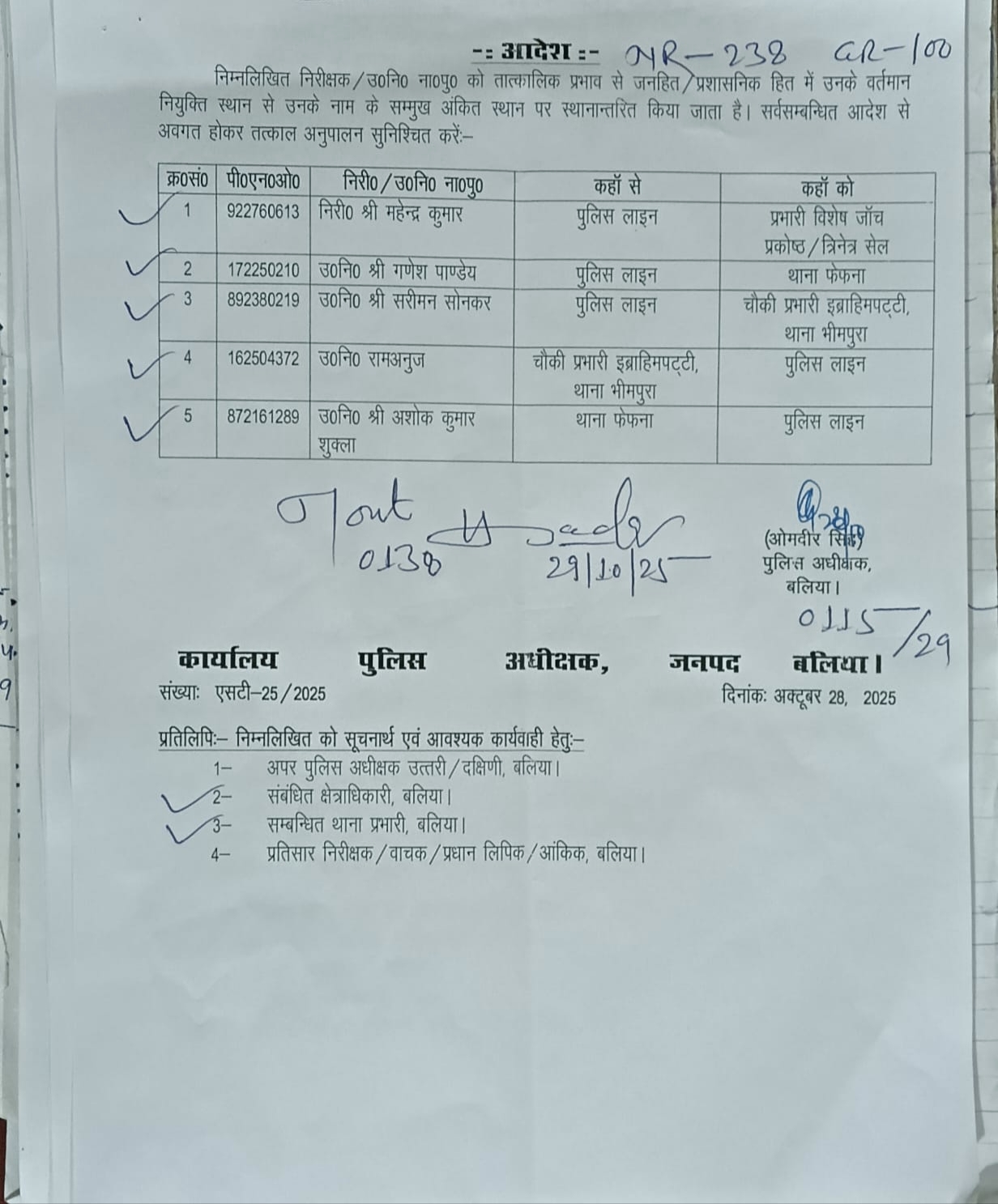 इस फेरबदल से उम्मीद जताई जा रही है कि बलिया में अपराध नियंत्रण और शांति व्यवस्था को नई मजबूती मिलेगी।