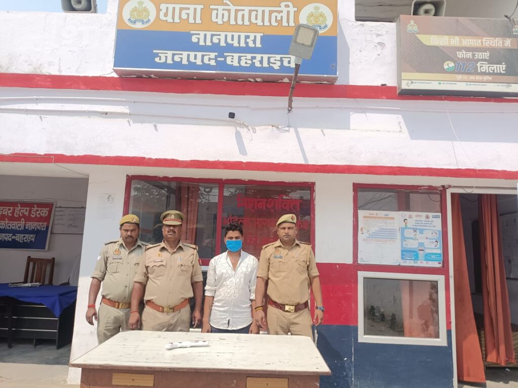 बहराइच (राष्ट्र की परम्परा) । जिले के जूड़ा गांव निवासी एक युवक ने अवैध असलहा के साथ वीडियो बनाकर उसे सोशल मीडिया पर पोस्ट कर दिया, इसके बाद दहशत फैलाने के लिए शेयर कर दिया। पुलिस ने उसे गिरफ्तार कर जेल भेज दिया है। प्रभारी निरीक्षक नानपारा राकेश कुमार सिंह के कुशल नेतृत्व में टीम गठित कर तमंचा 315 बोर व एक जिन्दा कारतूस 315 बोर के साथ ग्राम जुड़ा के पास से एक अभियुक्त को किया गया गिरफ्तार। गिरफ्तार अभियुक्त संदीप कुमार पुत्र शिवकुमार निषाद ‌निवासी ग्राम जूड़ा थाना कोतवाली नानपारा का अवेध तमाचे के साथ सोशल मीडिया पर एक वीडियो वायरल हो रहा था जिसके क्रम वायरल वीडियो के अज्ञात व्यक्ति की पता करते हुए अभियुक्त उपरोक्त को उसके गाँव से ही तमंचा 315 बोर व जिन्दा कारतूस के साथ गिरफ्तार किया। गिरफ्तारी व बरामदगी के आधार पर थाना स्थानीय पर मुकदमा पंजीकृत कर विधि कार्यवाही कर जेल रवाना किया गया।