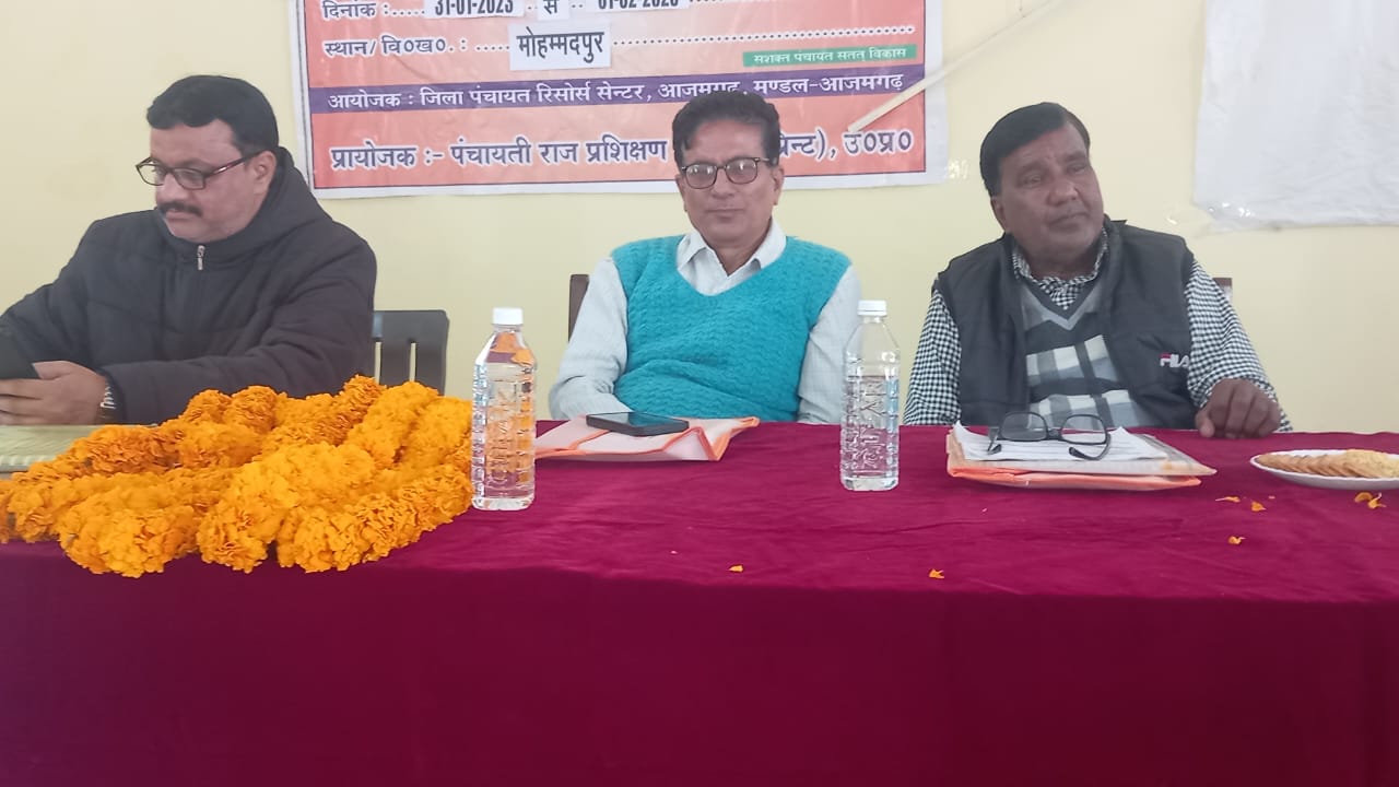 आजमगढ़ (राष्ट्र की परम्परा) राष्ट्रीय ग्राम स्वरोजगार अभियान के अंतर्गत क्षेत्र पंचायत सदस्य प्रमुख का दो दिवसीय प्रशिक्षण कार्यक्रम मंडल स्तर पर, प्रायोजक पंचायती राज प्रशिक्षण संस्थान लखनऊ के द्वारा किया जा रहा है जबकि आयोजन जिला पंचायत संसाधन केंद्र आजमगढ़ के द्वारा किया जा रहा है जिसमें क्षेत्र पंचायत का गठन, समितियां एवं उनके कार्य को भली भाती बताया जा रहा है। सतत विकास लक्ष्यों का स्थायीकरण और 9 थीम एवं 15 केंद्र, स्वच्छ भारत मिशन ओडीएफ प्लस, मातृभूमि योजना का आयोजन स्वयं के स्रोत पंचायत पुरस्कार राष्ट्रीय व राज्य स्तर के द्वारा किया जाएगा। बहुत सी योजनाओं के बारे में आज क्षेत्र पंचायत सदस्यों को अवगत कराया गया, भली भाती प्रशिक्षण दिया गया या प्रशिक्षण दो दिवसीय है। बुधवार को प्रशिक्षण का पहले दिन ब्लॉक मोहम्मदपुर में दो दिवसीय प्रशिक्षण हुआ, जहां पर राज्य स्तरीय प्रशिक्षक, संजय कुमार मिश्रा, रमेश चंद्र सिंह ,कमलाकांत राय, वरिष्ठ फैक्ट्री डीपीआरसी दीपक सिंह, सहायक हरेंद्र, तमाम अधिकारीगण व क्षेत्र पंचायत सदस्य मौजूद रहे ।