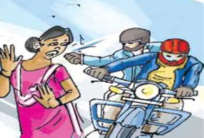 प्राप्त जानकारी के अनुुसार चंदन बाग (कामत घर) हनुमान मंदिर के पास, सिद्धिविनायक काम्प्लेक्स की रहने वाली 37 वर्षीय शिक्षिका माधुरी जीतेंद्र आहिरे, रविवार को जब रजनी मोहन भोईर और मनीषा वामन खरे अपने सहेलियों के साथ पैदल जा रही थी, इतने में चंदन बाग रोड पर मुंह पर रुमाल बांधकर सामने से आए दो अज्ञात मोटरसाइकिल सवार पीछे बैठे बदमाश ने महिला के गले से लगभग 75000 कीमत की मंगलसूत्र छीन कर, कामत घर गांव की ओर फरार हो गए। पीड़ित महिला ने इसकी शिकायत शहर पुलिस स्टेशन (कुम्भार वाड़ा) को दी, उक्त पीड़ित महिला की शिकायत पर पुलिस ने भारतीय दंड संहिता की धारा 380, 457/ 34 के तहत मामला दर्ज कर लिया है। आगे की जांच पुलिस द्वारा ततपरता के साथ किया जा रहा है।