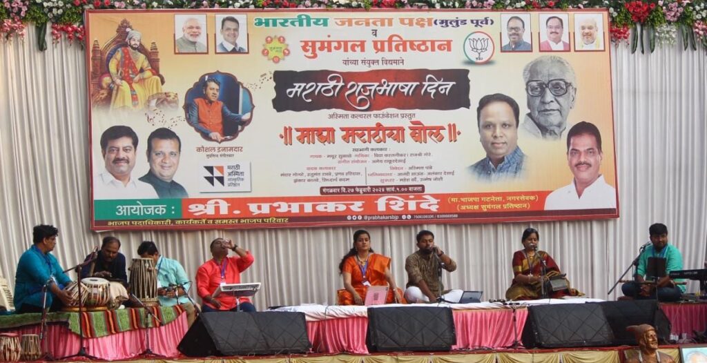 मराठी भाषा दिवस के अवसर पर सुमंगल प्रतिष्ठान मुलुंड और भारतीय जनता पार्टी मुलुंड के सहयोग से अस्मिता सांस्कृतिक फाउंडेशन द्वारा प्रस्तुत। मेरा मराठी भाषण इस सांस्कृतिक कार्यक्रम का आयोजन मुलुंड पूर्व के राजे संभाजी सांस्कृतिक भवन में किया गया। मशहूर संगीतकार कौशल इनामदार ने अपने खास अंदाज में गाना गाकर लोगों का मन मोह लिया।