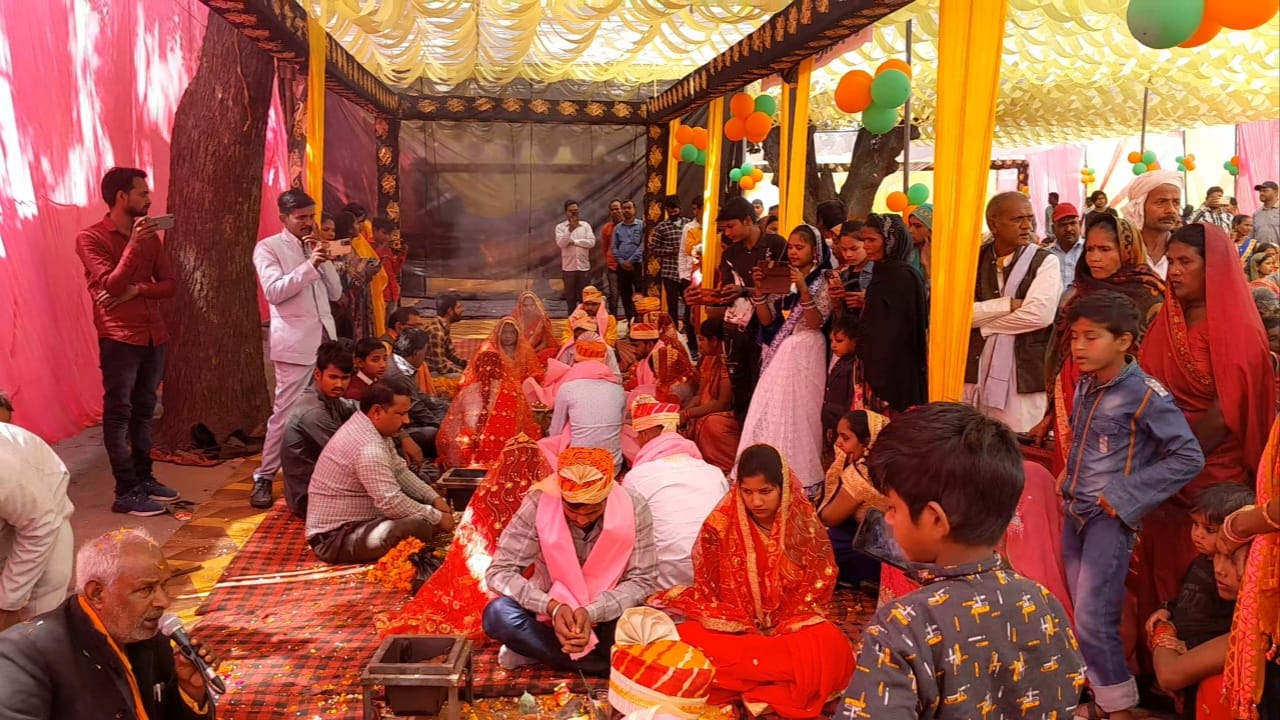 उतरौला ,बलरामपुर(राष्ट्र की परम्परा) आदर्श चुनाव आचार संहिता लगने के दृष्टिगत मार्च के प्रथम सप्ताह में गुरुवार को ब्लॉक परिसर में शादी की शहनाई गूंजी। मुख्यमंत्री सामूहिक विवाह के दौरान रेहरा29 गैंड़ास01 श्रीदत्तगंज 11,बलरामपुर 13, व उतरौला 11, नगर पालिका 03 समेत कुल 68 नव विवाहित जोड़ों ने विवाह मंडप में एक दूसरे के साथ जीवन बिताने का संकल्प लिया।जिसमें 04मुस्लिम जोड़ों का निकाह कराया गया। विधायक प्रतिनिधि सुनीता वर्मा ने नव दंपत्तियों के सुखमय जीवन की कामना करते हुए उन्हें शासन से मिली किट प्रदान करते हुए आशीर्वाद दिया। अपने संबोधन में उन्होंने कहा कि निर्धन परिवारों के समक्ष विवाह में आने वाली कठिनाईयों को देखते हुए मुख्यमंत्री ने सामूहिक विवाह कराने की योजना बनाई थी। यह योजना पूरे प्रदेश में एक समान रूप से सभी वर्गो के लिए चलाई जा रही है। भाजपा विधानसभा प्रभारी सुधीर श्रीवास्तव ने कहा कि सरकार हर परिवार की योग्य विवाहित बालिकाओं की शादी के लिए हर संभव अनुदान व गृहस्थी सजाने के आवश्यक सामान देकर उन्हें सुखमय जीवन बिताने का अवसर दे रही है। अब सीधे नवविवाहिताओं के खाते में पैंतीस हजार की रकम ट्रांसफर कर रही है। दी जाती है। नगरपालिका अध्यक्ष प्रतिनिधि अनूप गुप्त रमेश जायसवाल कृष्ण कुमार बीडीओ सुमित सिंह ने संबोधित किया। इस दौरान ब्लॉक प्रमुख प्रतिनिधि महिपाल चौधरी प्रधान संघ अध्यक्ष ज्ञानेंद्र वर्मा जयप्रकाश चौरसिया राजेश कुमार वर्मा का सहयोग सराहनीय रहा। नवविवाहित परिवारों के लिए भोजन व जलपान की भी व्यवस्था कराई गई थी।