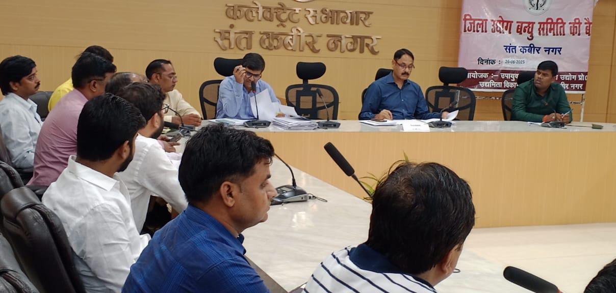 संत कबीर नगर (राष्ट्र की परम्परा)। जिलाधिकारी आलोक कुमार की अध्यक्षता में जिला उद्योग बन्धु समिति, जिला निर्यात प्रोत्साहन समिति एवं पीएम विश्वकर्मा योजना जिला क्रियान्वयन समिति की बैठक कलेक्ट्रेट सभागार में सम्पन्न हुई। बैठक में मुख्य विकास अधिकारी जयकेश त्रिपाठी सहित संबंधित विभागों के अधिकारी, उद्योग प्रतिनिधि व व्यापारीगण उपस्थित रहे।