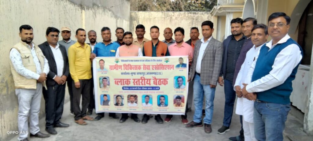 ग्रामीड़ चिकित्सक सेवा एसोसिएशन के तत्वाधान में ब्लॉक स्तरीय बैठक का आयोजन, सठियांव ब्लॉक के जमुडी बाजार में एक स्कूल में हुई जिसकी अध्यक्षता संगठन के प्रदेश उपाध्यक्ष डॉ अनिल सरोज और संचालन मंडल अध्यक्ष डॉ दिनेश शर्मा ने किया ।सठियांव ब्लॉक के तमाम सम्मानित चिकित्सक इस आयोजित बैठक में उपस्थित हुए तथा संगठन के नीति और विचार को सुने और अपने हक सम्मान की लड़ाई में एक साथ मिलकर कंधे से कंधा मिलाकर चलने की कसम खाई। जिलाध्यक्ष डॉक्टर संतोष शर्मा ने कहा कि संगठन निरंतर आगे बढ़ रहा है, और मजबूत हो रहा है। हमें उम्मीद ही नहीं पूर्ण विश्वास है कि हम एक दिन जरूर अपनी मांग सरकार से मनाएंगे । उन्होंने कहा कि ग्रामीण चिकित्सक समाज की सेवा भगवान की तरह करें, क्यों कि हलोगों को भगवान की उपाधि मिली हैं।