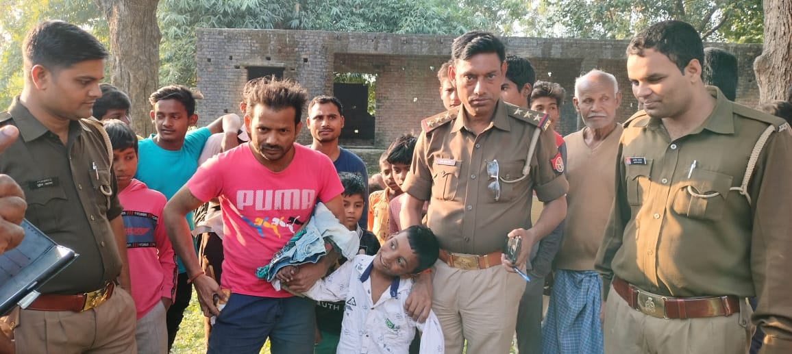 भलुअनी/ देवरिया (राष्ट्र की परम्परा)। रितिक गुप्ता पुत्र मिंटू गुप्ता निवासी जोकहां गोसाई टोला थाना रुद्रपुर जनपद देवरिया जिसकी उम्र 6-7 वर्ष है, अपने मामा संदीप गुप्ता पुत्र रमेश गुप्ता निवासी चौमुखा थाना भलुअनी जनपद देवरिया के घर आया था,जो दोपहर में अपने मामा के घर से निकल गया।बच्चे की मानसिक स्थिति ठीक नहीं है,उसके मामा संदीप ने काफी खोजबीन की,पर कहीं पता नहीं चलने पर पुलिस को सूचना दिए,जिस पर भलुअनी पुलिस द्वारा सक्रियता दिखाते हुए बच्चे की तलाश शुरू कर दी गई, पुलिस द्वारा तलाश करते हुए बैकुंठपुर ग्राम के पास स्थित पोखरी में रितिक गुप्ता जो पानी में अंदर चला गया था दिखाई दिया,जिसको गांव के सहयोग से बाहर निकाला गया तथा 2 घंटे के अन्दर पुलिस ने बच्चे को उसके परिजनों को सौंप दिया।
