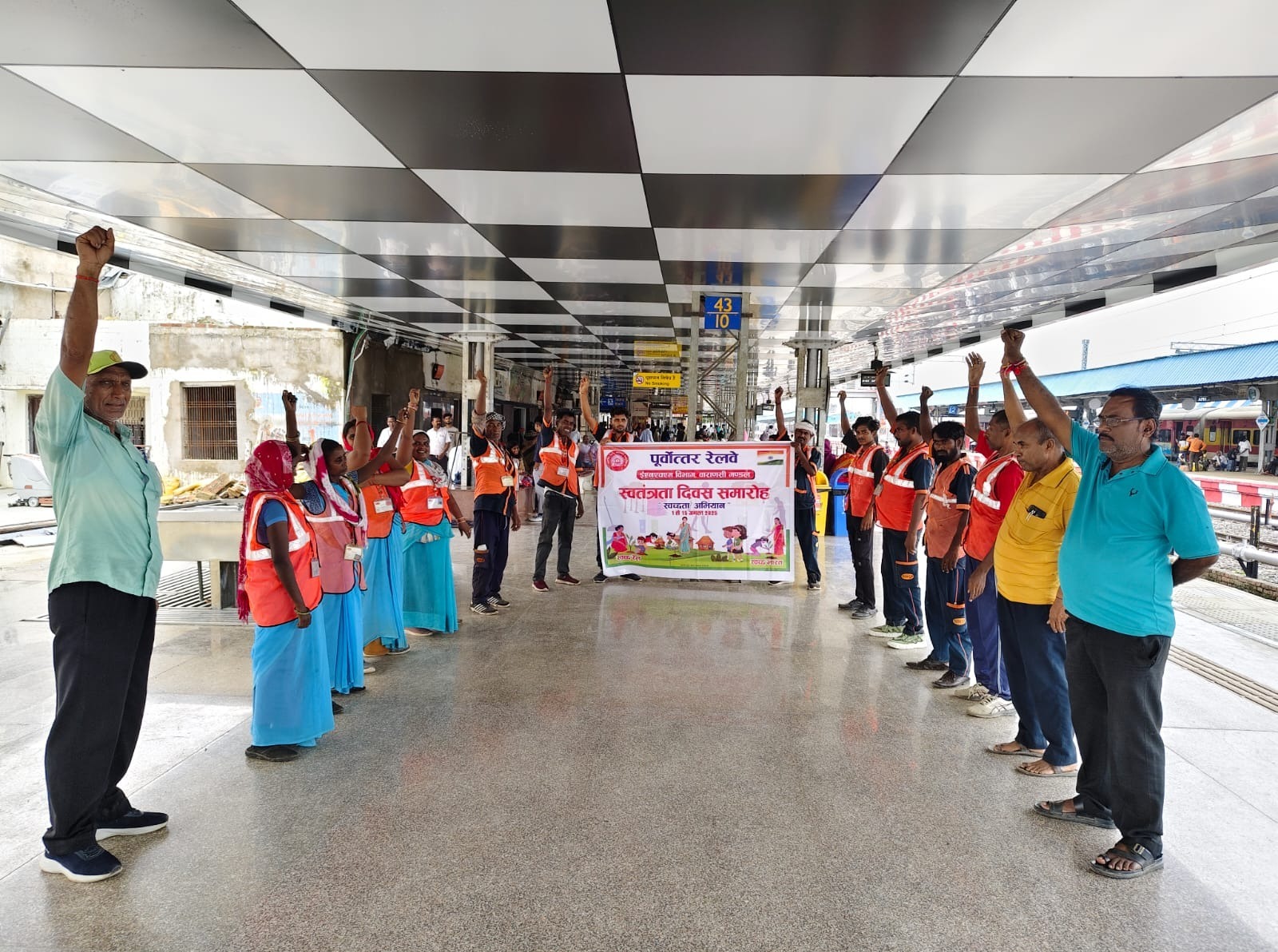 वाराणसी (राष्ट्र की परम्परा ) रेलवे प्रशासन द्वारा देश की आजादी का जश्न स्वच्छता के संकल्प के साथ मनाया जा रहा है। सम्पूर्ण भारतीय रेल पर मनाये जा रहे स्वच्छता पखवाड़े के प्रथम चरण के बारहवें दिन पूर्वोत्तर रेलवे के वाराणसी मंडल पर भी मण्डल रेल प्रबंधक वाराणसी आशीष जैन के निर्देशन एवं वरिष्ठ मण्डल यांत्रिक इंजीनियर अभिषेक राय के नेतृत्व में वाराणसी मंडल के आजमगढ़, बलिया, बनारस, वाराणसी सिटी, गाजीपुर सिटी, भटनी जं, छपरा, सीवान, देवरिया सदर, मऊ और प्रयागराज रामबाग स्टेशन पर स्वतंत्रता दिवस के अन्तर्गत स्वच्छता अभियान चलाया गया। जिसके अंतर्गत वाराणसी मंडल के स्टेशनों पर कार्यरत स्वास्थ्य निरीक्षको ने संविदा कर्मचारियों व स्टेशन पर कार्यरत रेलवे कर्मचारियों के साथ मिलकर स्वच्छता सम्बन्धी स्लोगन, पोस्टर एवं बैनर के माध्यम से जनजागरुकता रैली निकली, साथ ही साथ नुक्कड़ नाटक के माध्यम से यात्रियों ओर कर्मचारियों को स्वछता के प्रति जागरुक किया गया एवं स्वच्छता अभियान का प्रचार प्रसार किया गया। सभी प्रमुख रेलवे स्टेशन पर स्वच्छता अभियान के अंतर्गत कूड़ेदान (डस्टबिन) वितरण कार्यक्रम का आयोजन किया गया । साथ ही साथ सभी प्रमुख स्टेशन पर “स्वच्छ प्रसाधन” एवं “स्वच्छ संवाद” कार्यक्रम का भी आयोजन किया गया था। वाराणसी मण्डल के सभी स्टेशनों एवं कार्यालयों में प्रभात फेरी निकालकर और नुक्कड़ नाटक के माध्यम से यात्रियों और कर्मचारियों को स्वच्छता के प्रति जागरुक किया गया । आज विशेष सफाई अभियान चला कर कार्यालयों, शौचालयों एवं प्रतीक्षालयों की गहन सफाई किया गया।