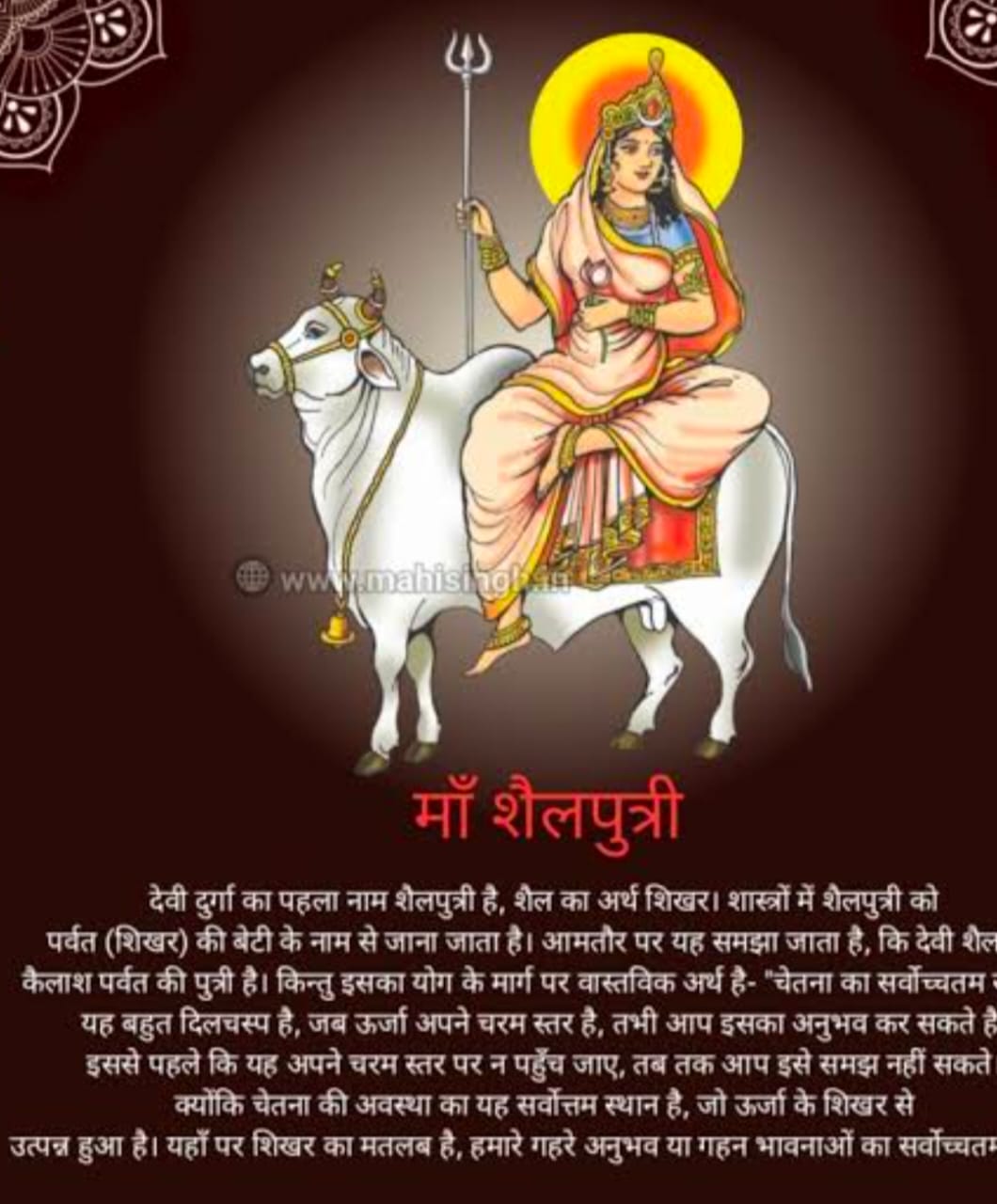 नवरात्रि का पहला दिन मां दुर्गा के प्रथम स्वरूप मां शैलपुत्री को समर्पित होता है। पर्वतराज हिमालय की पुत्री होने के कारण इन्हें शैलपुत्री कहा जाता है। सती के पुनर्जन्म के रूप में जन्म लेने वाली यह देवी भक्तों को स्थिरता, शांति और आध्यात्मिक शक्ति प्रदान करती हैं।