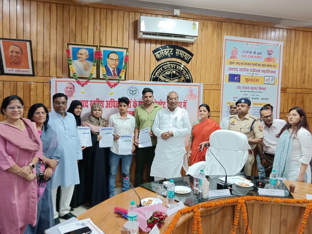 बहराइच (राष्ट्र की परम्परा) जनपद में सूक्ष्म, लघु एवं मध्यम उद्यमों का उद्यम पोर्टल पर पंजीकरण हेतु 15 जून 2023 तक सघन अभियान चलाया जा रहा है। प्रदेश के मत्स्य एवं जनपद प्रभारी मंत्री डॉ. संजय कुमार निषाद ने जनपद भ्रमण कार्यक्रम के दौरान कलेक्ट्रेट सभागार में पंजीकरण अभियान का शुभारम्भ किया तथा अभियान के प्रथम दिन 24 उद्यमियों द्वारा पोर्टल पर पंजीकरण कराया गया,जिसमें से 04 उद्यमियों नसीमा खान, रश्मी खान, राकेश कुमार व शेख शारिफ रजा को प्रभारी मंत्री द्वारा उद्यम पंजीकरण प्रमाण पत्र का वितरण किया गया। जिला उद्योग प्रोत्साहन तथा उद्यमिता विकास के उपायुक्त वीरेन्द्र कुमार ने बताया कि कोई भी उद्यमी, व्यापारी, आधार कार्ड, पैन कार्ड, बैंक खाता संख्या व मेल आईडी सहित उद्यम पोर्टल पर निःशुल्क पंजीकरण कर सकते है। उन्होंने बताया कि पंजीकरण से 50 लाख का दुघर्टना बीमा बैंक से ऋण प्राप्त करने में सुगमता तथा फैशिलिटेशन काउन्सिलिंग से विवादों के निस्तारण का लाभ मिलेगा। इसके अलावा विभिन्न विभागों से टेण्डर में अर्नेस्ट मनी में छूट का भी प्राविधान है। इस अवसर पर जिला पंचायत अध्यक्ष मंजू सिंह, सांसद बहराइच अक्षयवर लाल गोंड, एम.एल.सी. डॉ. प्रज्ञा त्रिपाठी, विधायक महसी सुरेश्वर सिंह व नानपारा के राम निवास वर्मा, जिलाधिकारी मोनिका रानी, पुलिस अधीक्षक प्रशान्त वर्मा, मुख्य विकास अधिकारी कविता मीना, अपर जिलाधिकारी अनिरूद्ध प्रताप सिंह, अपर पुलिस अधीक्षक नगर कुंवर ज्ञानंजय सिंह व ग्रामीण के पवित्र मोहन त्रिपाठी, नगर मजिस्ट्रेट शालिनी प्रभाकर सहित अन्य सम्बन्धित अधिकारी मौजूद रहे।