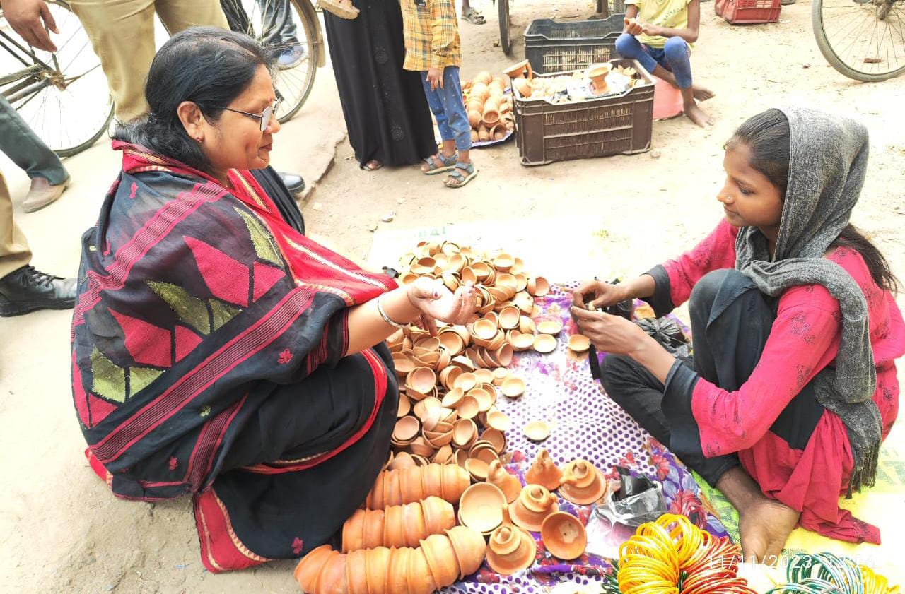 राज्यमंत्री विजयलक्ष्मी गौतम ने दीवाली मनाने के लिए सलेमपुर में मिट्टी के दीये, मटकी, गणेश, लक्ष्मी और सरस्वती की मिट्टी की बनी मूर्ति खरीदी।