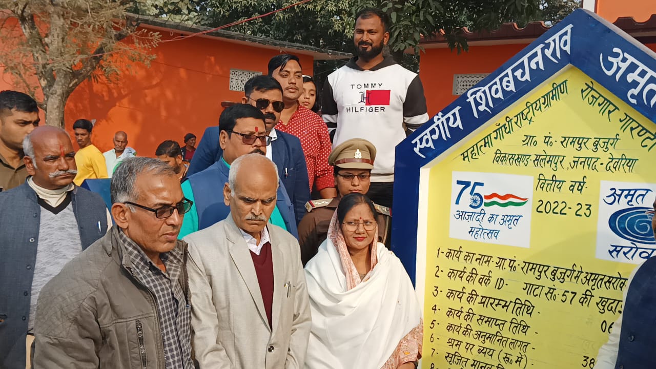 विकास खण्ड सलेमपुर के ग्रामसभा रामपुर बुजुर्ग में रविवार को अमृत सरोवर का उद्घाटन किया गया। कार्यक्रम की मुख्य अतिथि राज्यमंत्री विजय लक्ष्मी गौतम रही। राज्य मंत्री ने अमृत सरोवर पर निर्मित स्वतंत्रता संग्राम सेनानी, स्वर्गीय शिव वचन राव अमृत सरोवर का उद्घाटन द्वार का फीता काट कर किया।