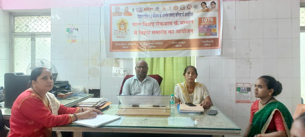 बलिया(राष्ट्र की परम्परा) सोमवार को जिलाधिकारी के निर्देशानुसार बाल विवाह रोकथाम हेतु जागरूकता कार्यक्रम का आयोजन वन स्टॉप सेंटर पर आयोजित किया गया । जिला बाल संरक्षण अधिकारी विनोद सिंह के द्वारा बाल विवाह की कुप्रथा को रोकने के बारे में बताया गया । जिसके उपरांत नीलम शुक्ला के द्वारा मुख्यमंत्री कन्या सुमंगला योजना,बाल सेवा योजना ,स्पॉन्सरशिप योजना, निराश्रित महिला विधवा पेंशन को विस्तार से बताया गया, साथ ही वन स्टाप सेंटर तथा चाइल्ड हेल्पलाइन की कार्यप्रणाली एवं वहां प्राप्त होने वाली सेवाओं के बारे में विस्तार से जानकारी दी गई। साथ में 18वर्ष से कम उम्र के बालक बालिकाओं के साथ हों रही यौन हिंसा से बचने व उनकी शिकायत करने, अपनी बात खुलकर रखने के बारे में जानकारी दी गई। साथ ही उनके अधिकारों के बारे में बताया गया। सरकार द्वारा संचालित हेल्पलाइन नंबर 1098, 181, 1090 की जानकारी भी प्रदान की गई। दहेज प्रथा को समाप्त करने तथा बाल श्रम को रोकने के लिए सभी को जागरूक किया