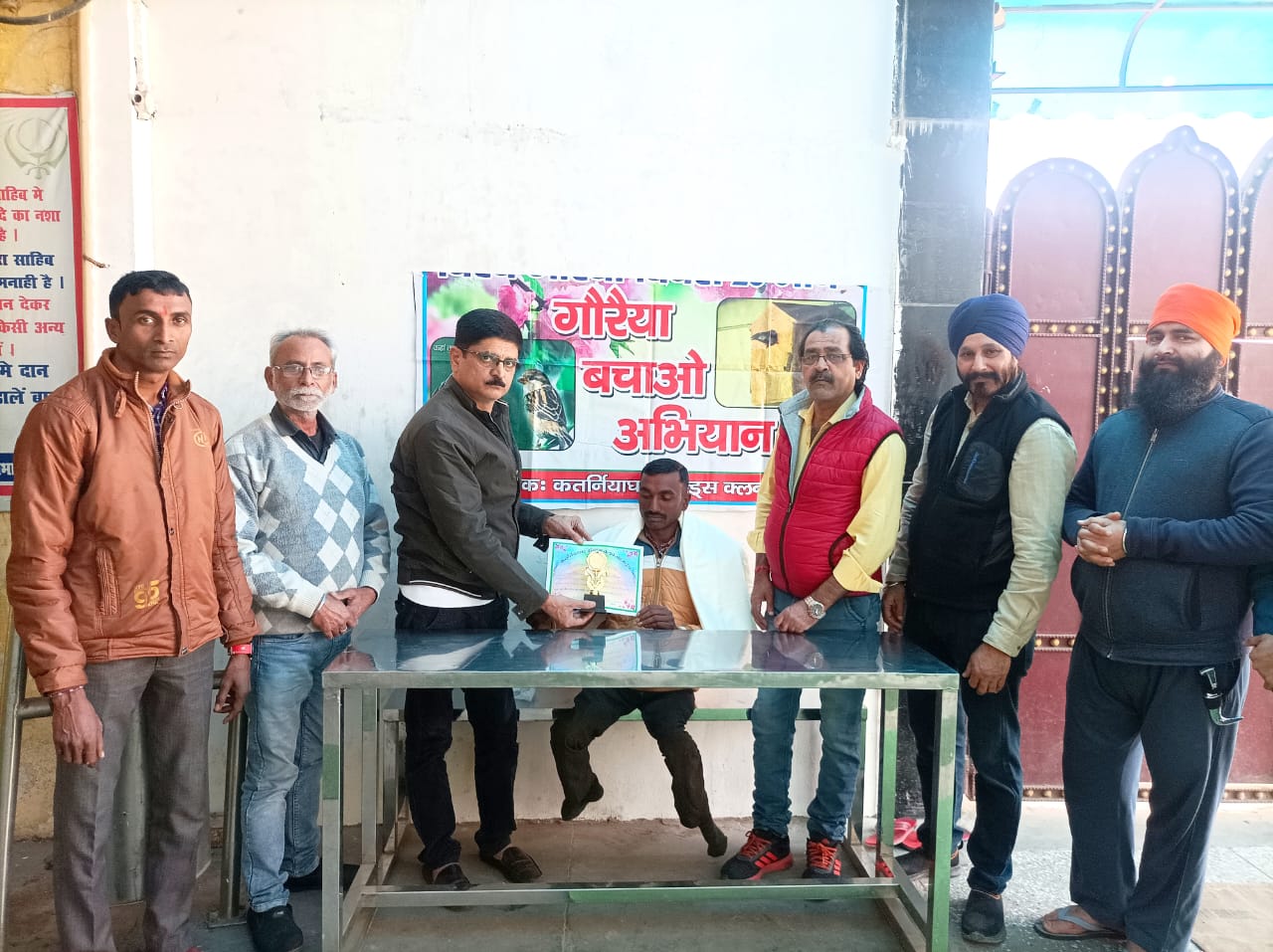 बहराइच (राष्ट्र की परम्परा) जिले के भज्जापुरवा गुलरा गाँव निवासी निःशक्त्त मिथिलेश द्वारा गौरैया संरक्षण पर काम किया जा रहा है। जिससे उनके आंगन के साथ आसपास मोहल्ले में गौरैया चहचहा रही हैं। इसको लेकर सोमवार को बर्ड मैन ऑफ बहराइच की उपाधि से सम्मानित किया गया। तहसील मिहींपुरवा के ग्राम पंचायत गुलरा के भज्जापुरवा गाँव निवासी मिथिलेश कुमार जायसवाल दोनों पैरों से दिव्यांग है। दिव्यांगता के बावजूद मिथिलेश गौरैया संरक्षण के लिए उत्कृष्ट कार्य रहे हैं। इसके लिए कतरनियाघाट फ्रेंड्स क्लब की ओर से सम्मान में प्रशस्ति पत्र, शाल व ट्राफी दिया गया। मिथलेश को सम्मानित करते हुए क्लब अध्यक्ष भगवान दास लखमानी ने मिथिलेश के कार्यों को सराहना करते हुए कहा कि मिथिलेश गौरैया संरक्षण के लिए अपने घर और गाँव में तो कार्य कर ही रहे हैं। उसके साथ ही पूरे जिले में लोगों को गौरैया के संरक्षण के लिए जागरूक कर रहे हैं जो सराहनीय है। इस अवसर पर क्लब सचिव राजीव श्रीवास्तव, सदस्य भूपेंद्र सिंह, हेमंत अरोड़ा,राम प्रताप जायसवाल, विक्रम सिंह आदि उपस्थित रहे।