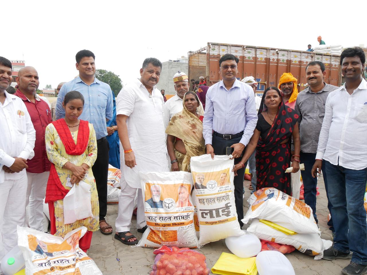 बाढ़ राहत गांव में विधायक ग्रामीण व सदर तहसीलदार बाढ़ प्रभावित ग्राम वासियों को बाढ़ राहत सामग्री वितरित किया। बाढ़ से जनजीवन अस्त व्यस्त ना होने पाए, ग्राम वासियों को राहत सामग्री समय-समय पर मिलता रहे जिससे ग्राम वासियों को खाने की वस्तु प्रशासन द्वारा उपलब्ध कराई गई सदैव मिलता रहे।शनिवार को विधायक ग्रामीण विपिन कुमार सिंह व सदर तहसीलदार ध्रुवेश कुमार सिंह नौशाढ़ में पहुंचकर राहत सामग्री वितरण किए। जिलाधिकारी कृष्णा करुणेश ने निर्देशित किया है कि सदर तहसील क्षेत्र में पुनः बाढ़ प्रभावित गांवों में राहत सामग्री के साथ-साथ ग्राम वासियों को आने-जाने के लिए पर्याप्त मात्रा में नाव उपलब्ध कराए जाए जिससे ग्राम वासियों को आने-जाने के लिए किसी प्रकार की दिक्कत न होने पाए, जिसके अनुपालन में ज्वाइंट मजिस्ट्रेट/ एसडीएम सदर मृणाली अविनाश जोशी के निर्देश पर सदर तहसीलदार ध्रुवेश कुमार सिंह विधायक ग्रामीण विपिन कुमार सिंह के साथ नौशाढ़ में कैंप लगाकर ग्राम वासियों को खाने की वस्तुएं दाल आटा चावल नमक माचिस तेल आलू प्याज लाई लाइफ जैकेट उपलब्ध कराई जिससे बाढ़ प्रभावित गांवों में खाने की वस्तुओं की दिक्कत न होने पाए। बाढ़ आने पर सुरक्षित स्थान पर लाइफ जैकेट पहन कर जा सके । तहसीलदार ध्रुवेश कुमार सिंह ने अपने समस्त लेखपाल और कानूनगो से कहा है कि बराबर गांव में कैंप करें, अगर बाढ़ की स्थिति विकराल होने की संभावना होती है तो तत्काल सूचित करें जिससे ग्राम वासियों को राहत शिविर में पहुंचाया जा सके। कोटेदारों और पार्षद को निर्देशित किया कि बाढ़ प्रभावित गांवों में राशन की उपलब्धता निरंतर बनी रहे।
