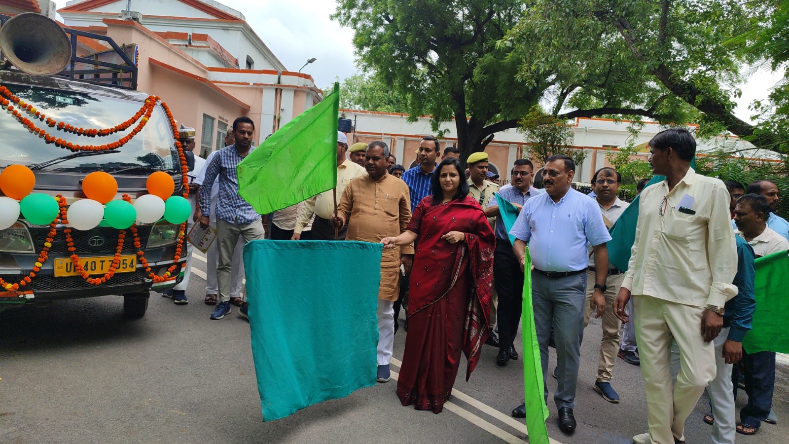बहराइच (राष्ट्र की परम्परा) । प्रधानमंत्री फसल बीमा योजना के प्रचार-प्रसार के उद्देश्यों से जिलाधिकारी मोनिका रानी ने विधायक नानपारा राम निवास वर्मा के साथ चार पहिया व दो पहिया ‘‘प्रचार-वाहनों’’ को हरी झण्डी दिखाकर कलेक्ट्रेट परिसर से रवाना किया।