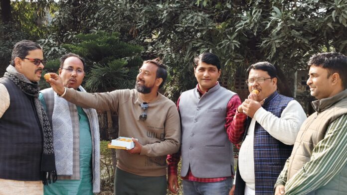 बजट से भाजपाई खुश,मिठाई खिला जाहिर की खुशी