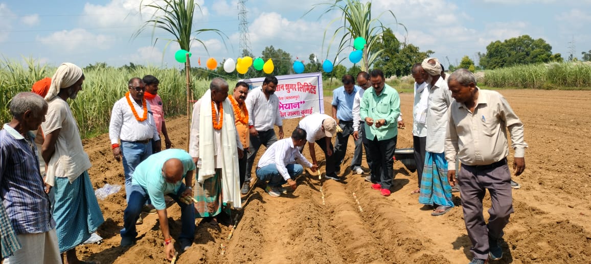 बजाज चीनी मिल परिक्षेत्र के ग्राम निरंजनपुर में आर पी शाही महाप्रबंधक गन्ना के निर्देशन में कृषक राजेंद्र वर्मा के यहां शरदकालीन गन्ना बुवाई का शुभारंभ अगेती गन्ना प्रजाति को.लख 13235 दो आंख के टुकड़े का ट्रेन्च विधि से भूमि एवं बीज उपचार करके सहफसल तिलहन के साथ किया गया।जिसमें चीनी मिल के एजीएम केन आर एस मिश्रा ने शरदकालीन गन्ना बुवाई के दौरान बरती जाने वाली सावधानियों के बारे में किसानों को विस्तार से जानकारी दी और बताया कि शरदकालीन गन्ना बुवाई का समय सितंबर से नवंबर तक सबसे अच्छा होता है इस समय बुवाई किये गये गन्ने की फसल मजबूत एवं अच्छी होती है तथा रोग प्रतिरोधक क्षमता अधिक होने के कारण रोग किट लगने की संभावना कम होती है जिससे अच्छी पैदावार होती है एवं बुवाई के लिए आसानी से गन्ना बीज भी मिल जाता है शरदकालीन गन्ना बुवाई में आलू मटर धनिया सरसों लहसुन आदि लगाकर अतिरिक्त लाभ कमा सकते हैं। उक्त अवसर पर चीनी मिल के अधिकारी केपी सिंह विजय पाण्डेय बृजेश प्रताप सिंह वीर विक्रम सत्यप्रकाश सिंह कौशलेंद्र सिंह मिश्रा कृषक रामानंद राधेश्याम दिलीप रामबृक्ष कल्लू आदि लोग मौजूद रहे।