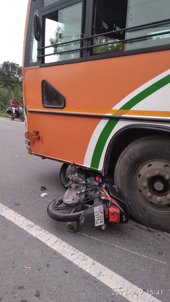 रोडवेज बस ने मोटरसाइकिल सवार को मारी ठोकर, मौके पर हुईं मौत