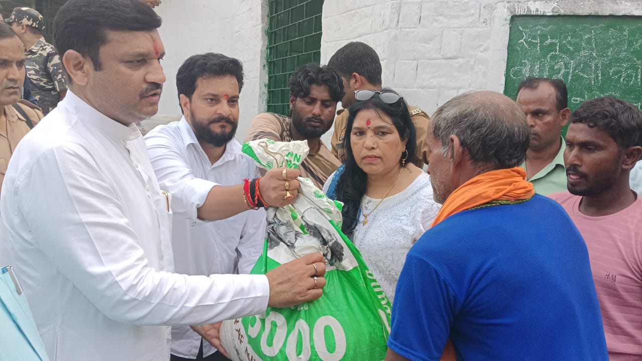ग्रामवासियों को वितरित किया खाद्यान्न कीट पीड़ित परिवारों से भेंट कर बंधाया ढ़ाढस