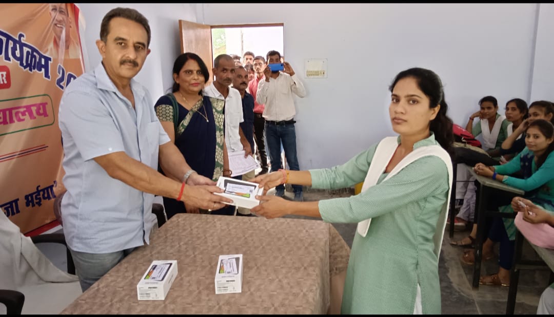 मनकापुर गोण्डा(राष्ट्र की परम्परा)।गोण्डा सांसद कीर्तिवर्धन सिंह ने योगी सरकार की मेधा उन्नयन कार्यक्रम के तहत मेधावी छात्र -छात्राओं की प्रतिभा बढ़ाने तथा उन्हें तकनीकी रूप से सशक्त बनाने के क्रम में राजा रघुराज सिंह महाविद्यालय मनकापुर में बतौर मुख्य अतिथि के रूप में सम्मिलित होकर बीए तृतीए वर्ष व एमए के चयनित छात्र -छात्राओं को टैबलेट /स्मार्टफोन वितरित किया एवं उज्ज्वल भविष्य की शुभकामनाएं दिया।