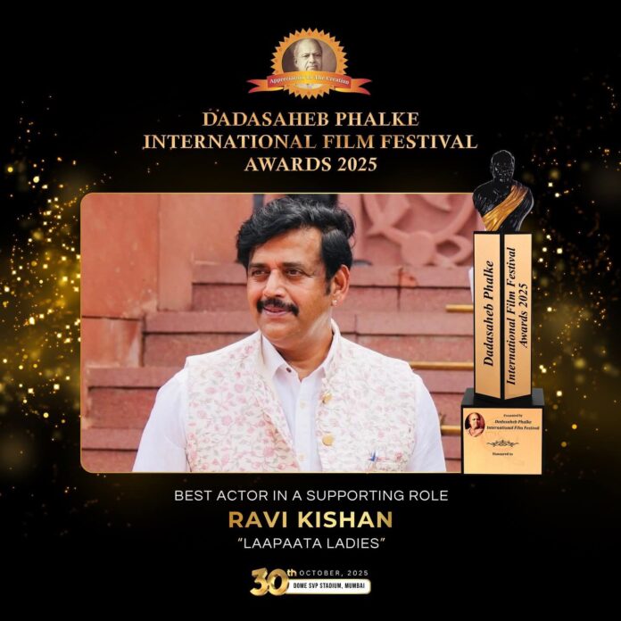 गोरखपुर(राष्ट्र क़ी परम्परा)l सांसद और फिल्म अभिनेता रवि किशन शुक्ला को एक और बड़ी उपलब्धि हासिल हुई है। उन्हें वर्ष 2025 के “दादा साहब फाल्के इंटरनेशनल फिल्म फेस्टिवल अवार्ड” से सम्मानित किया गया है। हाल ही में उन्हें हिंदी फिल्म “लापता लेडीज” के लिए फिल्मफेयर अवार्ड भी मिला था। लगातार दो प्रतिष्ठित सम्मान मिलने से उनके समर्थकों और प्रशंसकों में खुशी की लहर दौड़ गई।