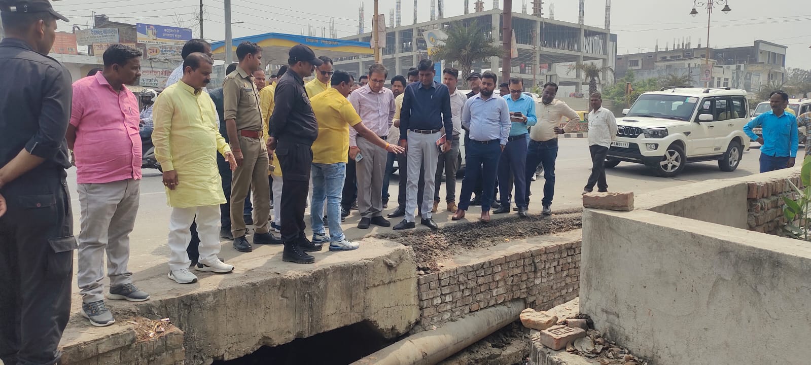 गोरखपुर (राष्ट्र की परम्परा)। नगर आयुक्त गौरव सिंह सोगरवाल मेडिकल कॉलेज रोड पर एच०एन० सिंह चौराहे से खजांची चौराहे तक पी0डब्ल्यू0डी० द्वारा बनवाये गये नाले का नगर निगम के निर्माण विभाग, लोक निर्माण विभाग एवं सेतु निगम के अधिकारियों के साथ संयुक्त निरीक्षण किया निरीक्षण के दौरान नगर निगम से मुख्य अभियन्ता, अधिशासी अभियन्ता, क्षेत्रीय सहायक / अवर अभियन्ता, सम्बन्धित जोनल अधिकारी, सफाई निरीक्षक, लोक निर्माण विभाग से सहायक अभियन्ता राजेश, सेतु निगम से सहायक अभियन्ता के०डी० सिंह, निवर्तमान पार्षद बृजेश सिंह राजेश तिवारी आलोक सिंह विशेन संतराज शर्मा एवं अन्य अधिकारी व कर्मचारी उपस्थित थे। निरीक्षण के दौरान नगर आयुक्त ने संबंधित अधिकारियों को निर्देशित किया कि एच०एन० सिंह चौराहे पर पी0डब्ल्यू0डी० द्वारा बनवाये गये नाले का लेवल रोड के किनारे की कालोनियों के लेवल से उपर बना दिया गया है, जिस कारण बरसात के समय कालोनियों का पानी नाले में नहीं आ पाता है एवं जलभराव की समस्या उत्पन्न होती हैं। लोक निर्माण विभाग के सहायक अभियन्ता राजेश को एच०एन० सिंह चौराहे से खजांची चौराहे तक जहां-जहां नाला का लेवल कालोनियों के नालों से उपर है, वहां पर नाले का लेवल नीचे करायें, ताकि बरसात में कालोनियों का पानी नाले में आ सके एवं अन्दर कालोनियों में जलभराव न हो ।