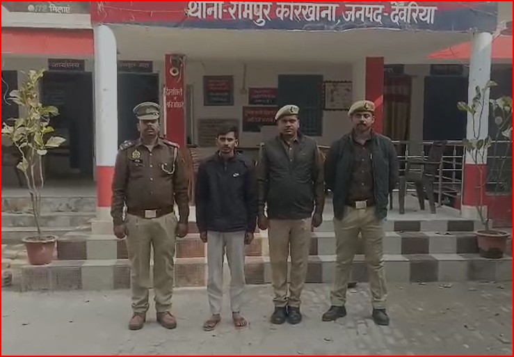 देवरिया (राष्ट्र की परम्परा)जनपद में अपराध नियंत्रण अभियान के तहत पुलिस को बड़ी सफलता मिली है। संजीव सुमन के निर्देशन में चलाए जा रहे अपराधियों की धरपकड़ अभियान के अंतर्गत थाना रामपुर कारखाना पुलिस ने हत्या के मामले में वांछित आरोपी को गिरफ्तार कर लिया है। पुलिस ने आरोपी के पास से अवैध चाकू भी बरामद किया है, जिससे इलाके में सुरक्षा व्यवस्था को और मजबूती मिलने की उम्मीद है।पुलिस अधीक्षक के निर्देशन में अपर पुलिस अधीक्षक आनन्द कुमार पाण्डेय और क्षेत्राधिकारी नगर संजय कुमार रेड्डी के पर्यवेक्षण में पुलिस टीम लगातार अपराधियों के खिलाफ कार्रवाई कर रही है। इसी क्रम में थाना रामपुर कारखाना में दर्ज मुकदमा संख्या 165/2025 के तहत हत्या और आर्म्स एक्ट से जुड़े मामले में आरोपी की तलाश की जा रही थी।पुलिस को मुखबिर से सूचना मिली कि आरोपी पंकज यादव ग्राम बैकुण्ठपुर का निवासी है और वह क्षेत्र में मौजूद है। सूचना के आधार पर पुलिस टीम ने ग्राम बरईपुर मंगलराव बंधा के पास घेराबंदी कर आरोपी को गिरफ्तार कर लिया। तलाशी के दौरान उसके पास से एक नाजायज चाकू बरामद किया गया।पुलिस ने आरोपी के खिलाफ संबंधित धाराओं में विधिक कार्रवाई शुरू कर दी है। इस कार्रवाई में उपनिरीक्षक आनन्द कुमार के साथ कांस्टेबल इन्द्रजीत वर्मा और कांस्टेबल अनमोल सरोज की अहम भूमिका रही। पुलिस अधिकारियों ने बताया कि अपराधियों के खिलाफ अभियान आगे भी जारी रहेगा और जिले में कानून व्यवस्था को मजबूत बनाए रखने के लिए लगातार कार्रवाई की जाएगी।पुलिस की इस सफलता से क्षेत्र में सुरक्षा का माहौल मजबूत हुआ है और आम जनता में विश्वास बढ़ा है। प्रशासन ने लोगों से अपील की है कि किसी भी संदिग्ध गतिविधि की सूचना तत्काल पुलिस को दें।