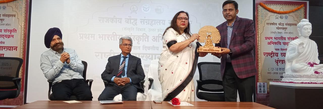 गोरखपुर (राष्ट्र की परम्परा)। संस्कृति विभाग, उत्तर प्रदेश के तत्वाधान में राजकीय बौद्ध संग्रहालय, गोरखपुर के यशोधरा सभागार में बुधवार को आस्था, परम्परा, संस्कृति का संगम महाकुंभ पर्व, प्रयागराज और भारतीय डाक टिकट प्रदर्शनी एवं तत्सम्बन्धी ब्रोशर एवं डाॅ. जसबीर चावला की पुस्तक ‘‘ प्रबंधन के गुर, बुद्ध के सुर ‘‘ का विमोचन एवं प्रथम भारतीय संस्कृति अभिरूचि पाठ्यक्रम के अन्तर्गत सात दिवसीय राष्ट्रीय व्याख्यान श्रृंखला का शुभारम्भ मुख्य अतिथि प्रोफेसर पूनम टण्डन, कुलपति,दीनदयाल उपाध्याय गोरखपुर, विश्वविद्यालय, गोरखपुर ने विशिष्ट अतिथि प्रोफेसर एसके द्विवेदी, लोकपाल, जीवाजी विश्वविद्यालय, ग्वालियर, मध्य प्रदेश की गरिमामयी उपस्थिति में किया। इस अवसर पर डाॅ. जसबीर सिंह चावला, चण्डीगढ़़ एवं मनोज कुमार श्रीवास्तव, जिला अग्रणी बैंक प्रबन्धक, भारतीय स्टेट बैंक की उपस्थिति उल्लेखनीय रही।