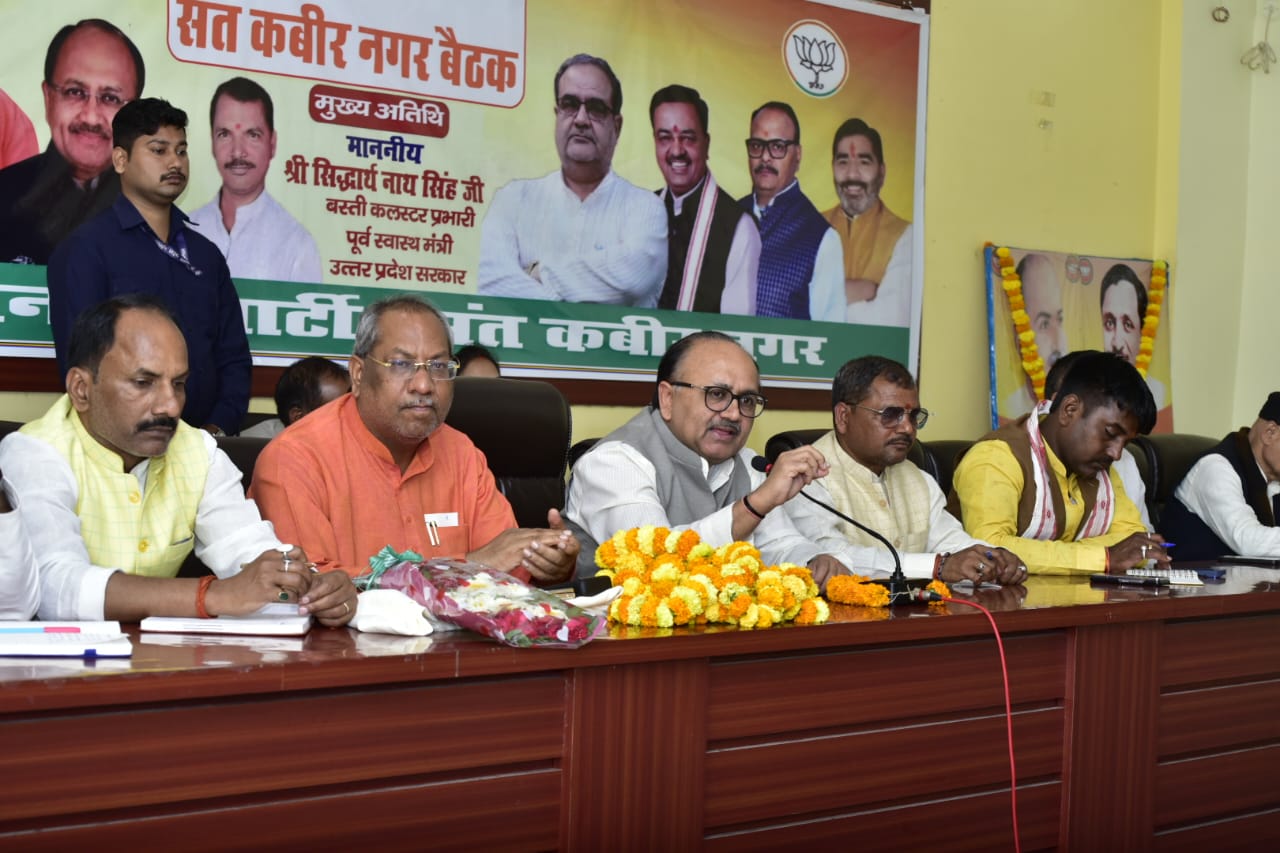 संत कबीर नगर(राष्ट्र की परम्परा)। लोकसभा चुनाव को लेकर भारतीय जनता पार्टी, संत कबीर नगर द्वारा गुरुवार को पार्टी कार्यालय पर लोकसभा क्षेत्र संत कबीर नगर के चुनाव प्रबंधन समिति की बैठक संपन्न हुई।