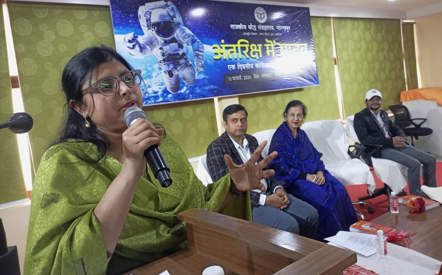 गोरखपुर (राष्ट्र की परम्परा)। राजकीय बौद्ध संग्रहालय, गोरखपुर में संस्कृति विभाग उत्तर प्रदेश और स्पेस आर्टिस्ट सुष्मिता सिंह बक्की के संयुक्त तत्वावधान में 10 फरवरी 2026 को अन्तरिक्ष में मानव विषय पर एक दिवसीय कार्यशाला सह प्रतियोगिता का आयोजन किया गया। कार्यक्रम की मुख्य अतिथि नासा साइन्टिस्ट (भारतीय मूल) डॉ. हाशिमा हसन रहीं, जबकि विशिष्ट अतिथि नक्षत्रशाला (तारामण्डल) गोरखपुर के खगोलविद् अमर पाल सिंह उपस्थित रहे।